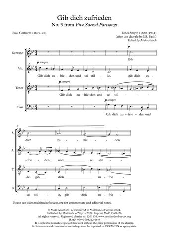 Lord, now lettest thou (Nunc dimittis), was published in 1891 by A P Schmidt without a Gloria: a Gloria has been composed sympathetically by Sarah MacDonald to enable this work to be included appropriately within the liturgy. Occasional minor rhythmic changes have been made and some underlay adjustments were required in order to accommodate the 1662 Book of Common Prayer translation of the words.