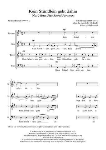 Es ist ein’ Ros’, a well-known Marian text, is employed in this setting in place of the original words Der Auferstehungs-Morgen (The Resurrection Morning), which was one of 12 songs published as Zwölf Lieder auf ihrer Reise in Musik gesetzt by Breitkopf, in 1786. The Soprano melody and piano accompaniment in this arrangement are original to von Paradis; a sympathetic second soprano line has been added in this edition by Olivia Sparkhall.