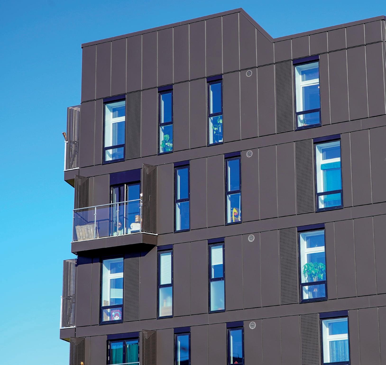 Facadeplader i aluminium giver god driftsøkonomi i kraft af materialets gode holdbarhed...“