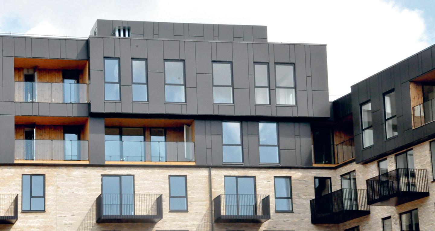 “Facader med alukassetter i 1-2 etager på penthouselejlighederne på de seks etager høje huse, samt alufacader i hele boligtårnets højde”