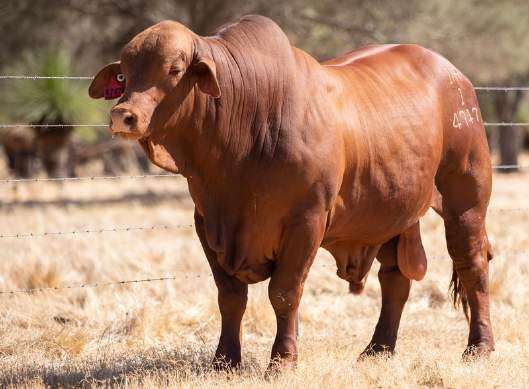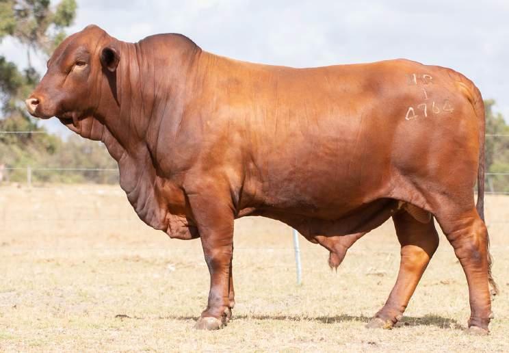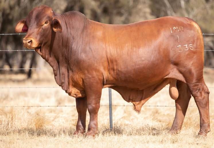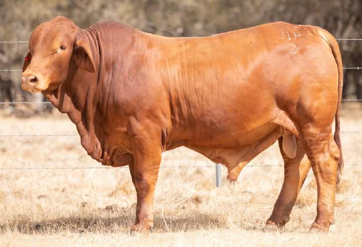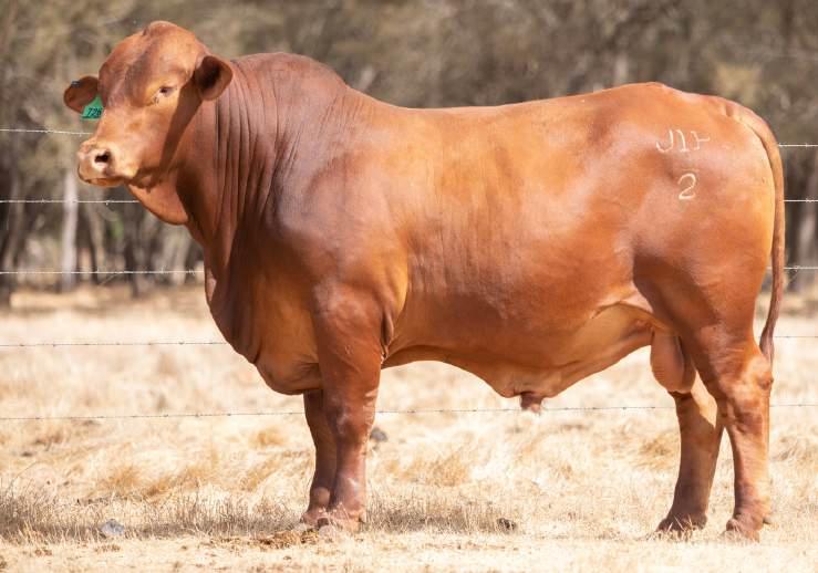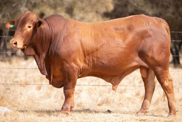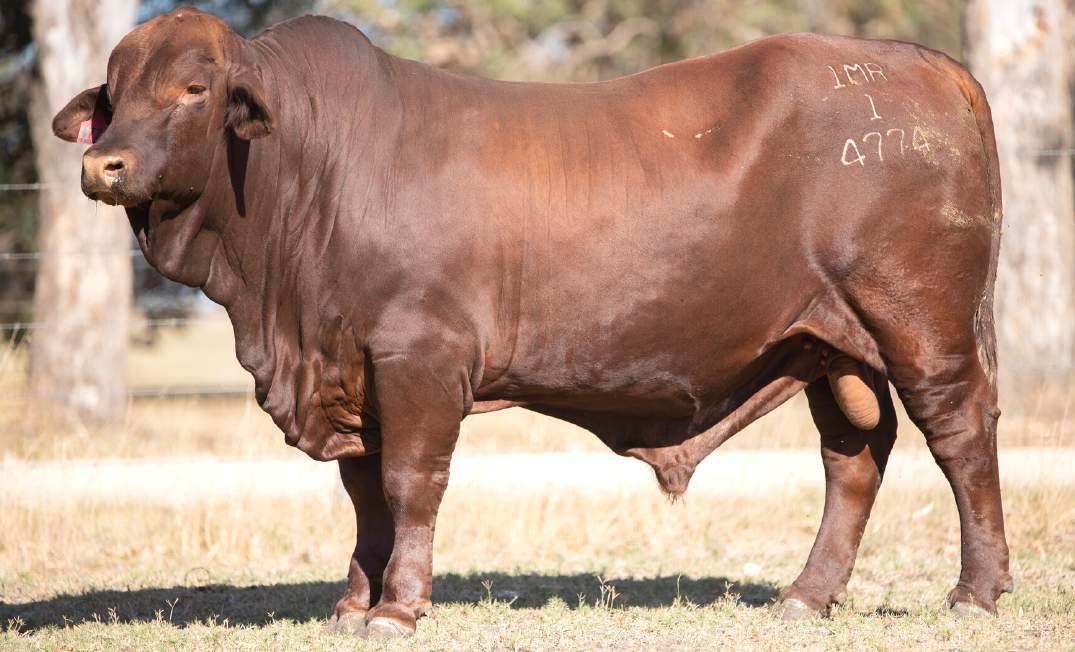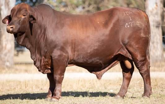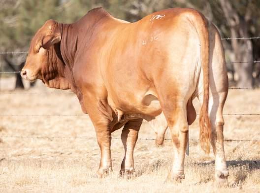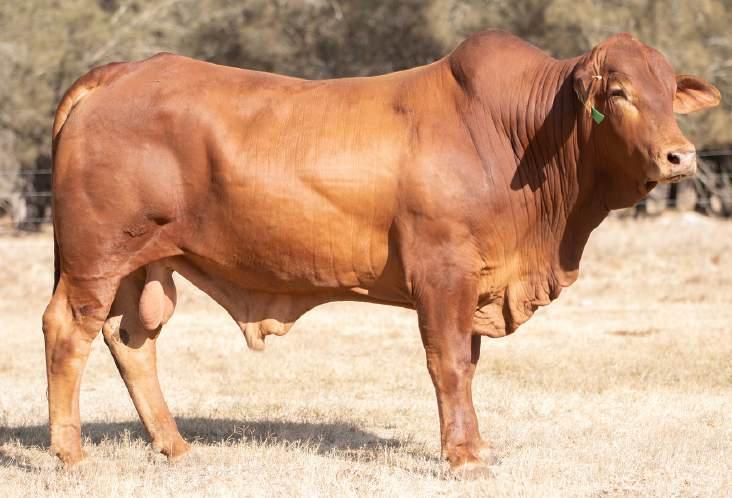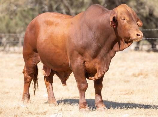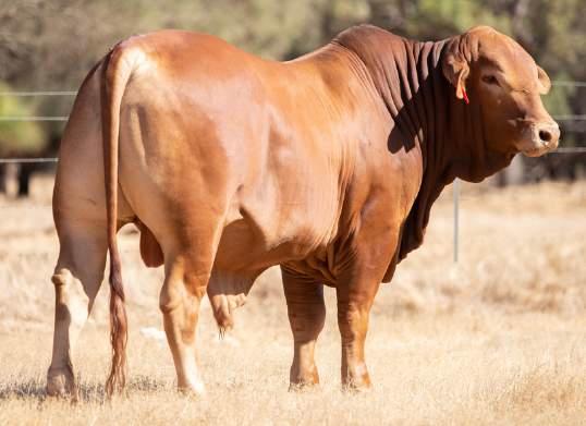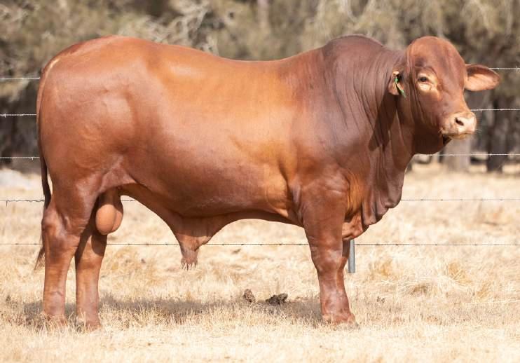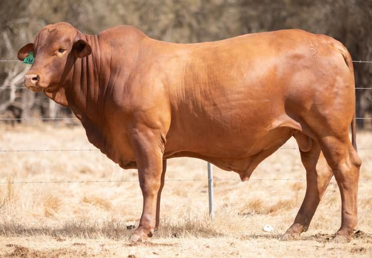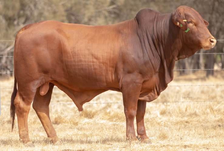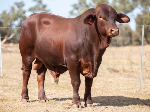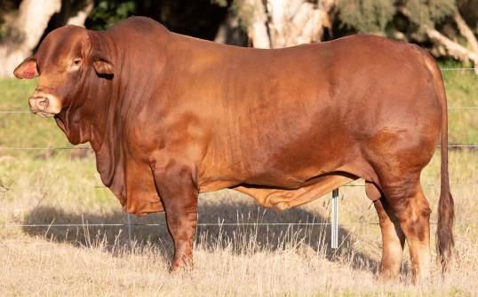 Thenamesaysitall-GAMECHANGER hasbeenjustthatforMundaReds.His femaleshavedepth,thickness,bonewhilsthis maleshavesireheads,widemuzzlesandshow greatmusclepatternthroughout Progenyare consistentlytheheaviestat200&400day weights.Thetemperamentonallhiscalvesis super.Wethinkthatmuchofgamechanger thatweretained10bullsforstuddutiesalong withover100retainedbreeders