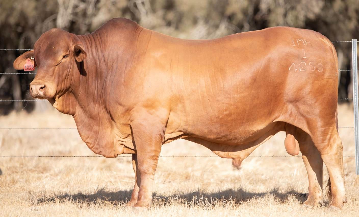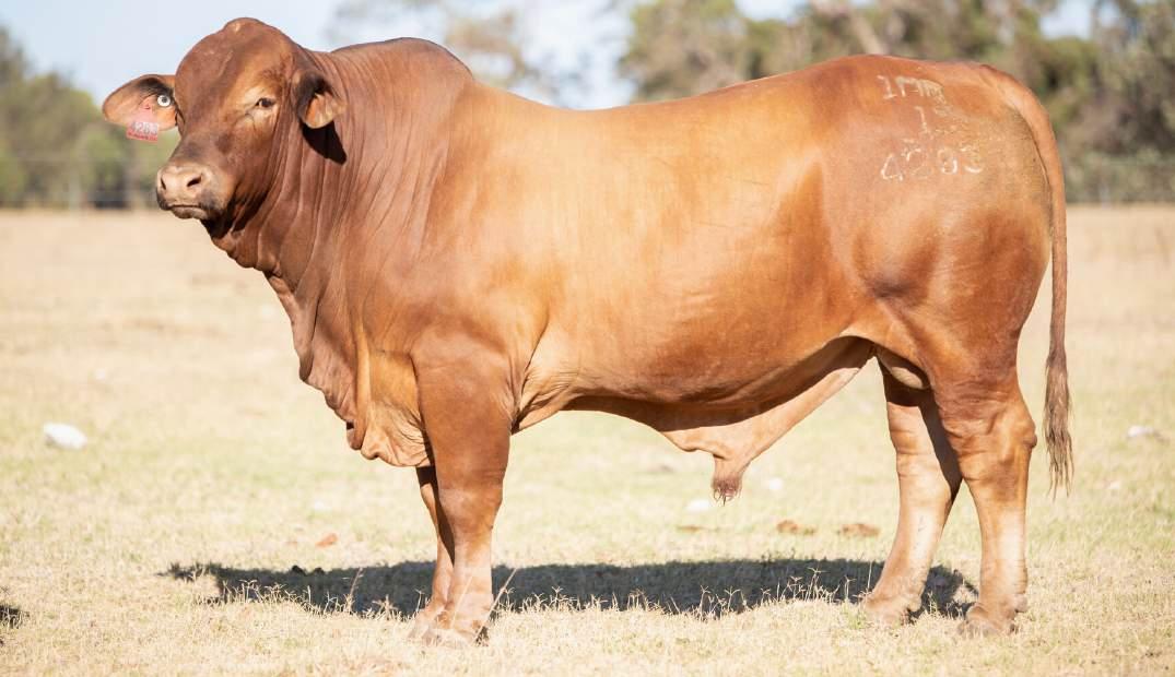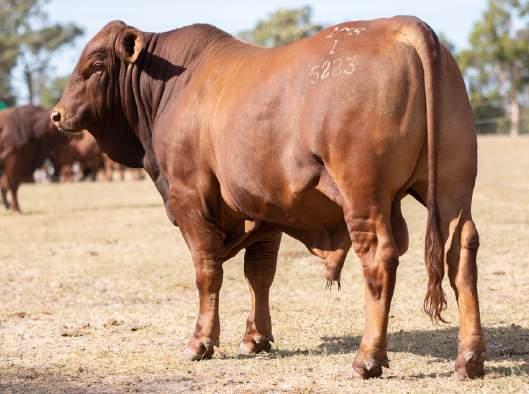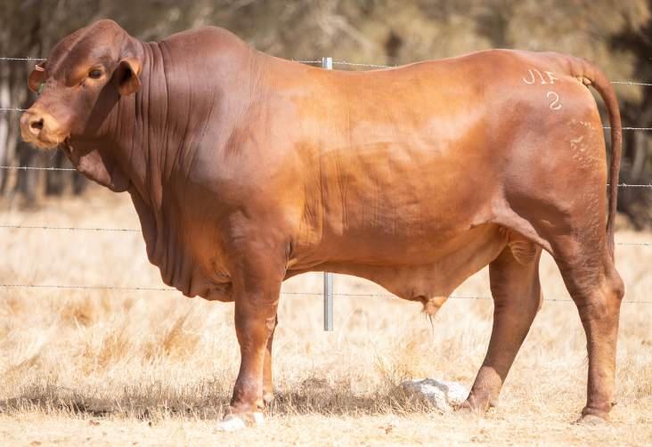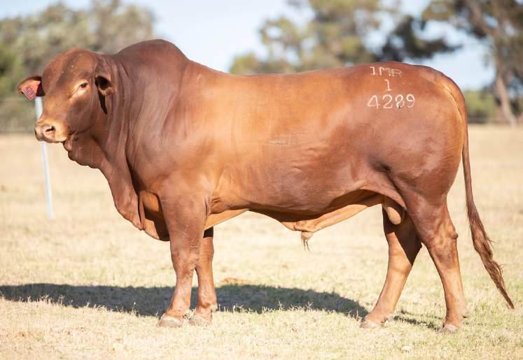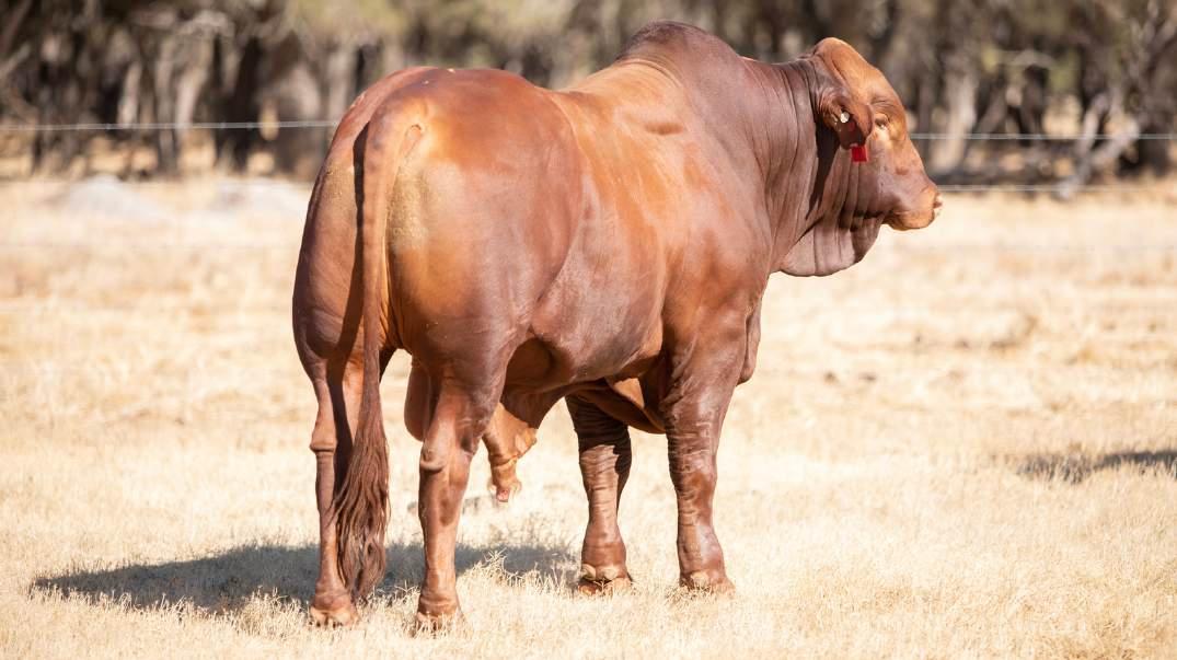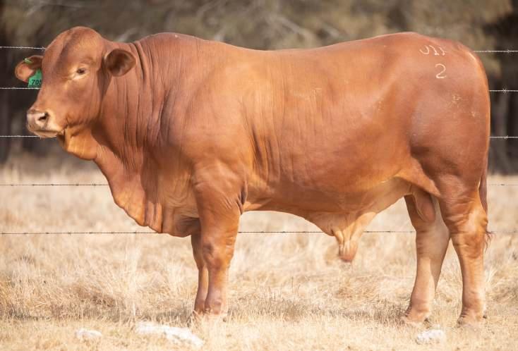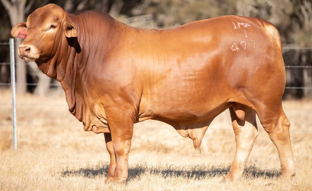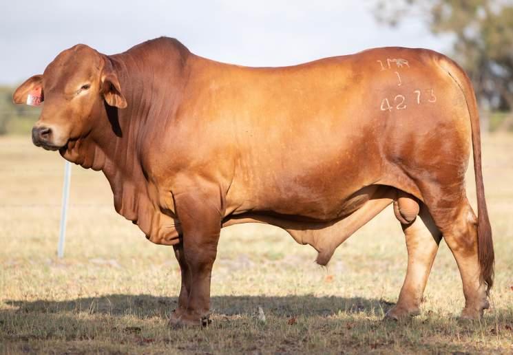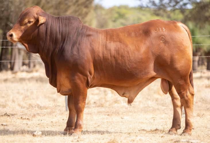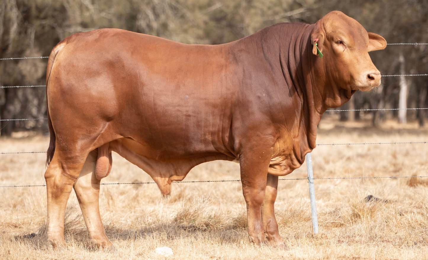 Thenamesaysitall-GAMECHANGER hasbeenjustthatforMundaReds.His femaleshavedepth,thickness,bonewhilsthis maleshavesireheads,widemuzzlesandshow greatmusclepatternthroughout Progenyare consistentlytheheaviestat200&400day weights.Thetemperamentonallhiscalvesis super.Wethinkthatmuchofgamechanger thatweretained10bullsforstuddutiesalong withover100retainedbreeders
