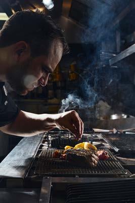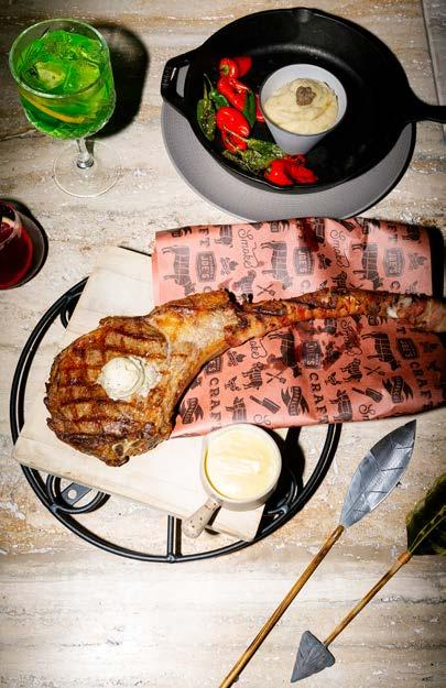 moderno, con un menú de alta gastronomía internacional contemporánea en el que las piezas de caza y pesca mandan: cortes premium que se deshacen en la boca, con crianza artesanal, “carneados” y traídos en exclusiva como el Angus Tartare con Vegetales y Papas Trufadas o el Tomahawk en Mantequilla de Tomillo y Tocino; o bien, la selección de pescados que se sirve en preparaciones de crudeza primitiva para gozar de su frescura y sabor, como el Hamachi con Nuez Especiada y Vinagreta de Jerez o las deliciosas Tostadas de Robalo y Habanero que son un must. La propuesta de proteínas se equilibra con el espíritu ancestral de la recolección de vegetales, que seducen con preparaciones y recetas que los eleva a rango de platos principales: co-