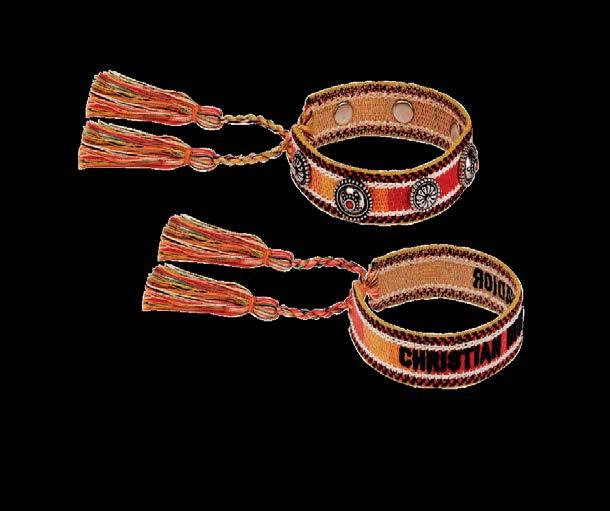 Las pulseras J’Adior se presentan con nuevos colores para la colección Verano 2020. El característico bordado “Christian Dior J’adior” aparece trazado en el tejido de al godón y contrasta con los tonos multicolo res de este set de pulseras. TIME