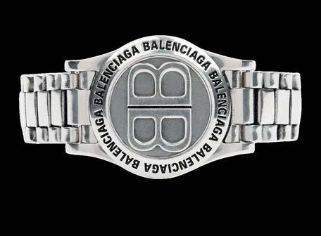 Pulsera Time en zamak de plata antigua, latón y acero de la marca Balenciaga de tres eslabones con el logotipo de BB grabado hecho en Italia. La pulsera viene con una bolsa para polvo y caja de Balenciaga.