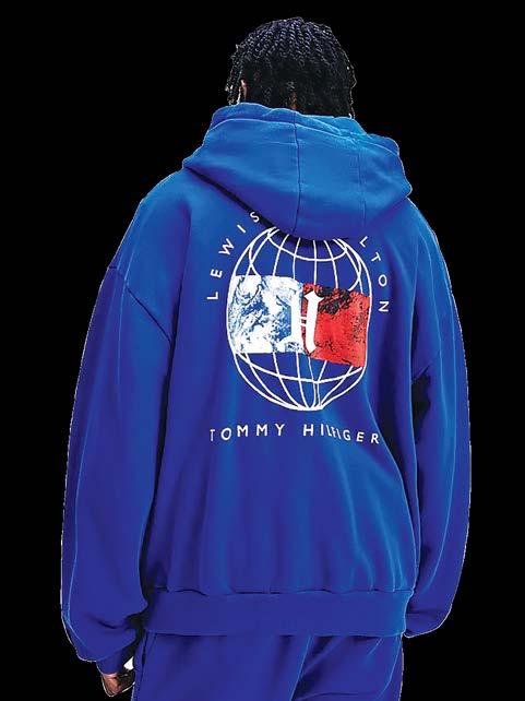 colección para otoño de Lewis Hamilton para su línea en colaboración con Tommy Hilfiger, TommyxLewis, muestra esta sudadera Lewis Hamilton de felpa de algodón orgánico destaca por el logo inspi-