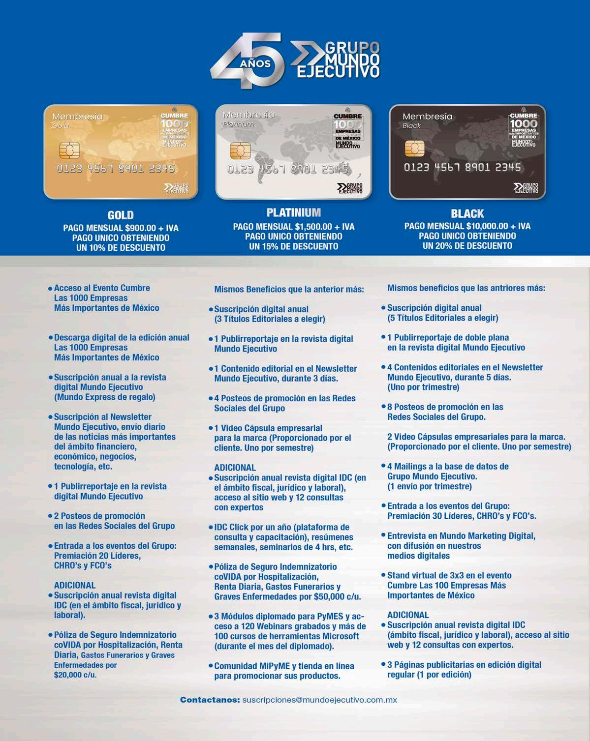 Responsable de suscripciones: Irma Ruiz irma.ruiz@mundoejecutivo.com.mx Tels. 55 5002 9429