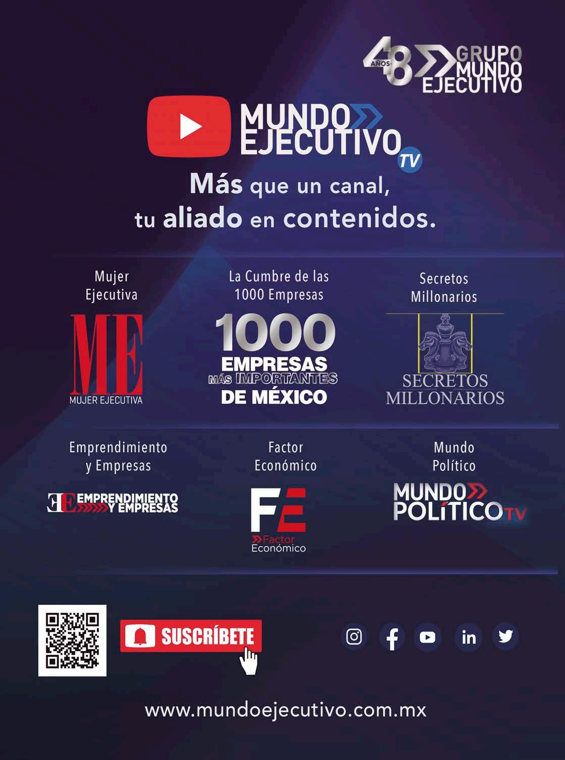 Responsable de suscripciones: Irma Ruiz irma.ruiz@mundoejecutivo.com.mx, Martha Santos martha.santos@mundoejecutivo.com..mx Tel. 55 5002 9513