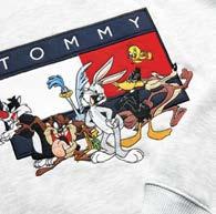 La capsula Tommy Jeans Looney Tunes esta diseñadaa través de un objetivo streetwear, dando vida a los personajes clásicos de Warner Bros para las generaciones de hoy. Todas las piezas son complementos ideales para el vestuario de coleccionistas sociales y creativos, los nativos digitales confiados y bien vestidos. Los niños pueden disfrutar de ropa estilo loungewear moderna y elevada en forma de pantalones de chándal Looney Tunes.