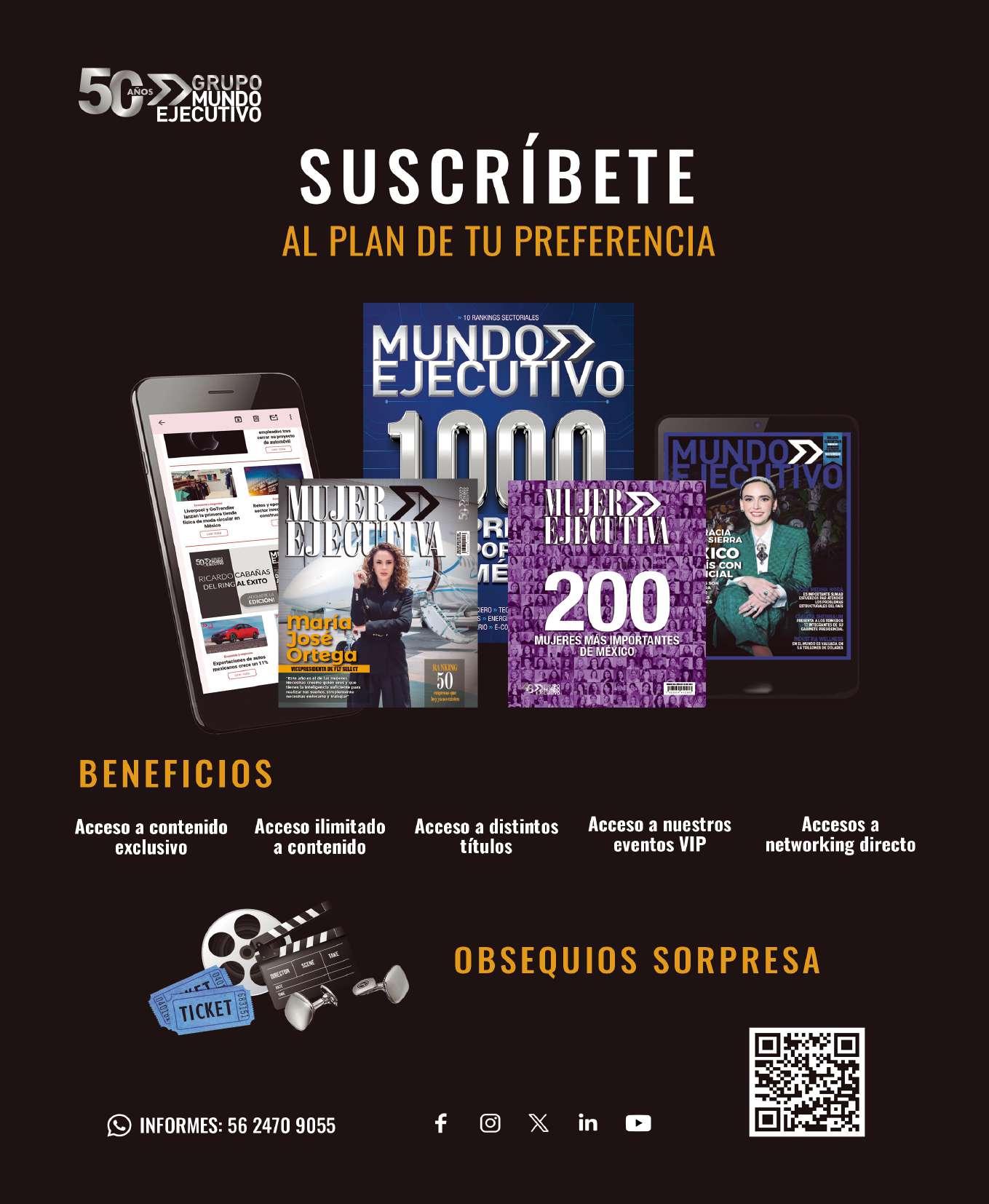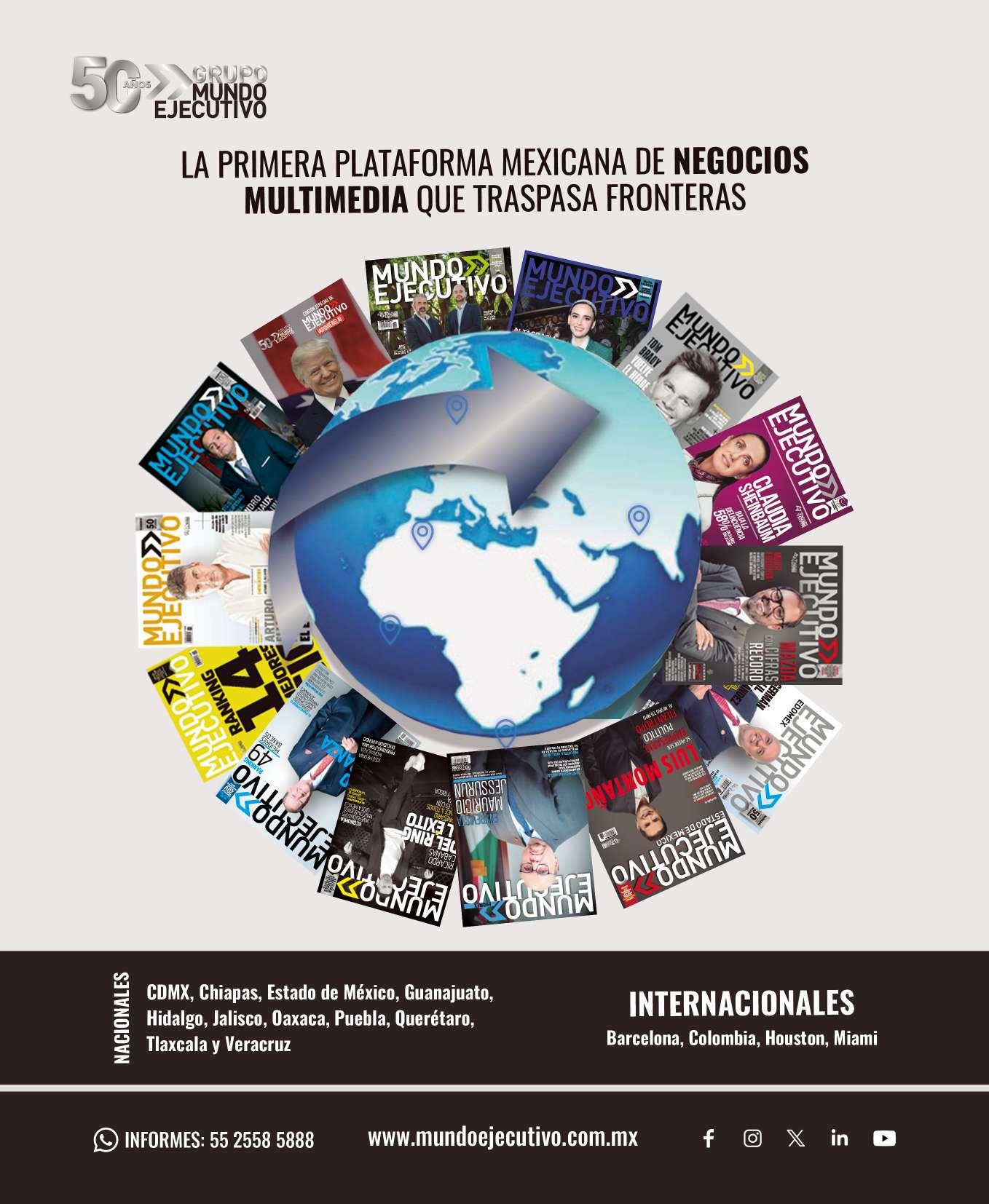SUSCRIPCIONES: Irma Ruiz irma.ruiz@mundoejecutivo.com.mx - Tels: 55 5002 9429, Martha Santos martha.santos@mundoejecutivo.com.mx - Tels: 55 5002 9513