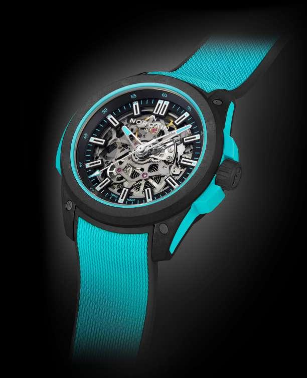 Caja y fondo de titanio, corona atornillada de cerámica negra.