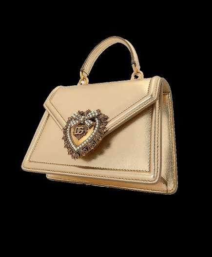 El pequeño bolso de mano Dolce & Gabbana de la línea Devotion se presenta en materiales que se adaptan a las ocasiones especiales. Realizado en napa mordoré, se caracteriza por el exclusivo cierre de corazón joya y por la correa inspirada en la manufactura de la alta joyería.