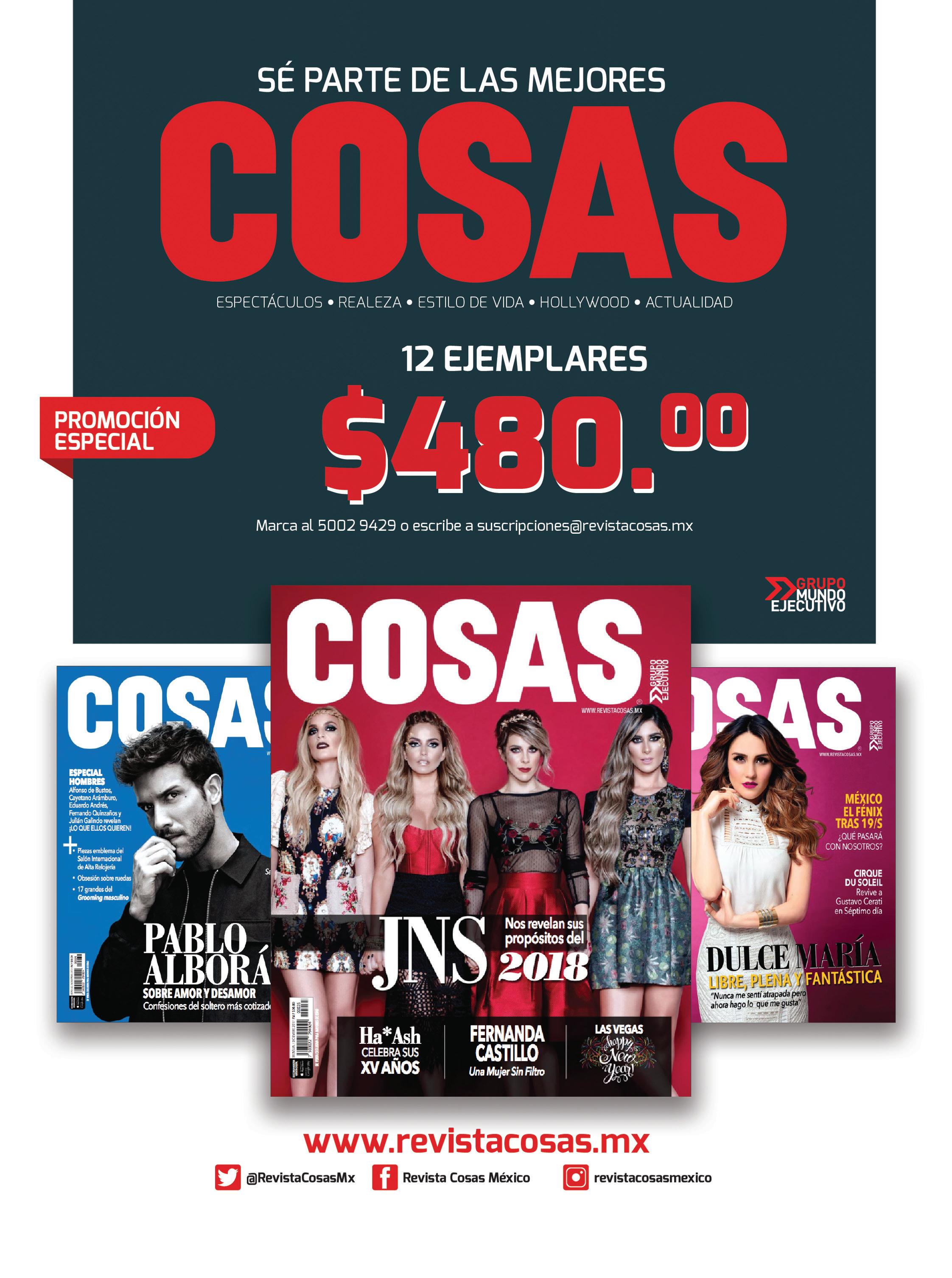 Reporteros: Alberto Vega y Regina Lázaro Corrección de estilo: Hiromi Furukawa Editor de Fotografía: Antonio Soto Fotografía: Umberto Strada y Jesús Gutiérrez Directora de Arte: Nax Aguilar Diseño: Gustavo Gómez, Ma. Fernanda Osorio, Nayhely Hernández y Karina Parra Arte Digital: Ericka Castillo y Miguel Fajardo Asistente Editorial: Ma. Eugenia Mata Gerente de Producción y Compras: Zitlaltzin Villagrán Asistente de Producción y Tráfico: Atahín Bautista Producción y Control de Calidad: Aarón Rangel Dirección Comercial: Benjamín Fontaine Director de Cuentas Estratégicas: José Antonio Kuri Mercadotecnia: Daniel Pérez Relaciones Públicas y Nuevos Negocios: Arlenne Muñoz Gerente Comercial: Alejandra Ramos alejandra.ramos@mundoejecutivo.com.mx Responsable de suscripciones: Irma Ruiz irma.ruiz@mundoejecutivo.com.mx Tels. 5002 9429, 5002 9513, 5002 9431 y 5002 9428