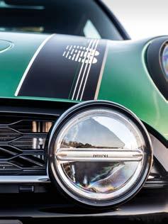 El MINI en particular, evoca las carreras deportivas de la marca, que comenzó en una etapa muy temprana y se mantuvo hasta el pasado reciente. El acabado de pintura exterior en British Racing Green IV, característico de estas competencias, ofrece una