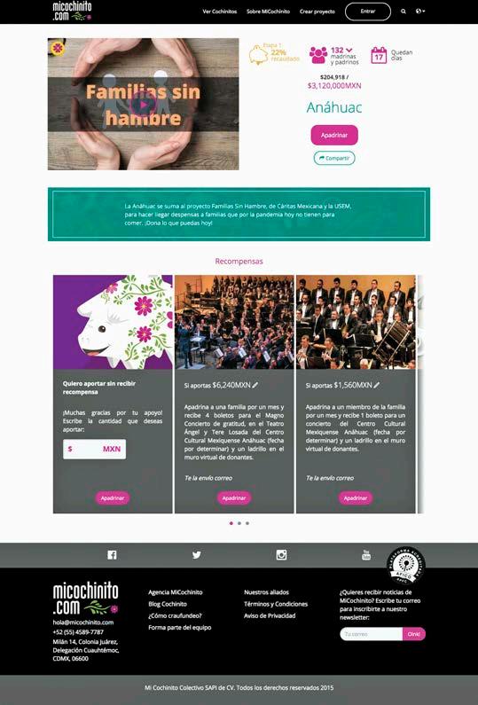 Es por eso que hizo un llamado a toda su comunidad para que hagan donaciones mediante la plataforma micochinito. com, donde el dinero donado va directo a la alimentación de las familias mexicanas.