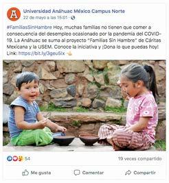 La Universidad Anáhuac se suma a la labor social para apoyar a personas que perdieron trabajo o que se agotaron sus recursos debido a la pandemia por el COVID-19. La institución sabe que son momentos difíciles por las que está pasando México y el mundo entero, el desempleo está incrementando rápidamente y ya son casi tres meses del “quédate en casa”.
