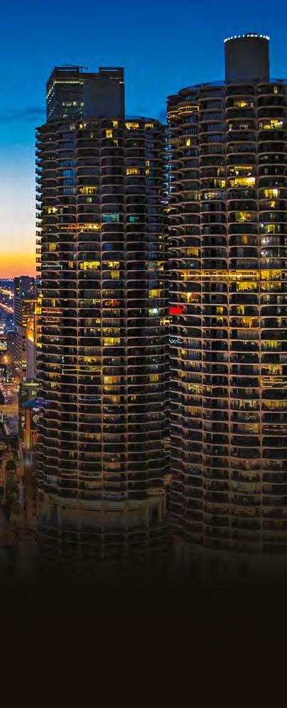 Situado en la orilla norte del Río Chicago encontrarás Marina City, un complejo de edificios que abarca toda una manzana de la calle State.