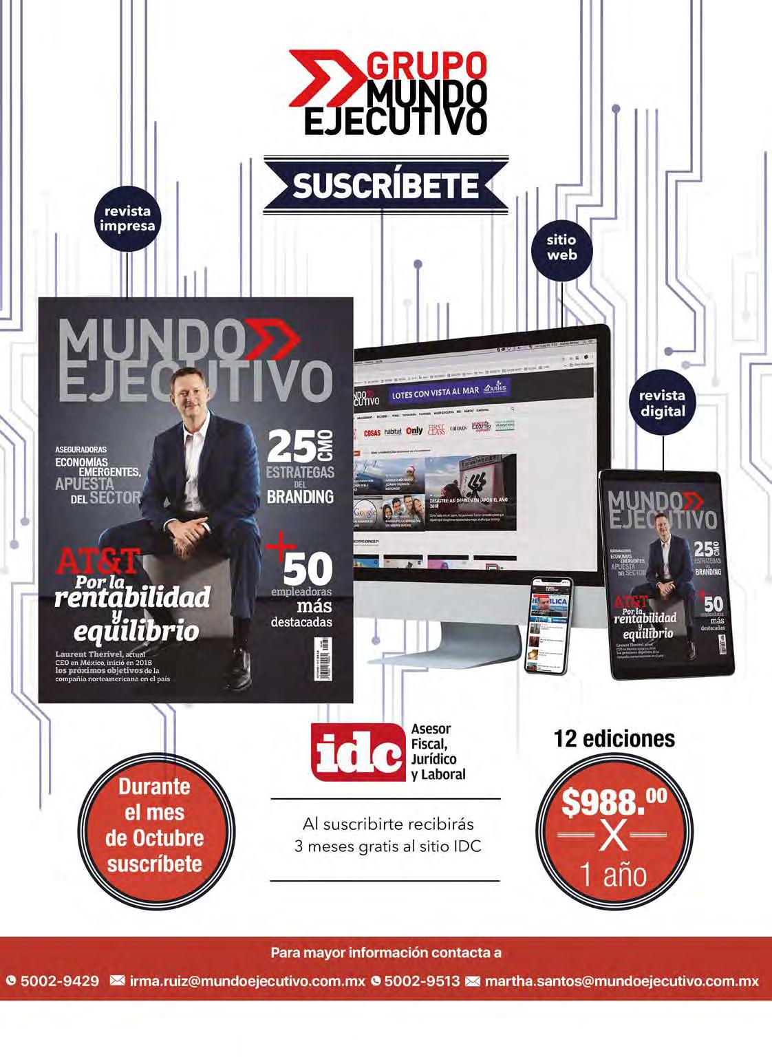 Producción y Control de Calidad: Aarón Rangel Responsable de suscripciones: Irma Ruiz irma.ruiz@mundoejecutivo.com.mx Tels. 55 5002 9429 y Martha Santos martha.santos@mundoejecutivo.com.mx Tels. 55 5002 9513