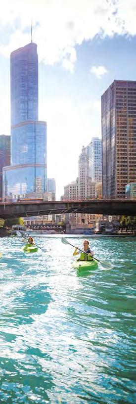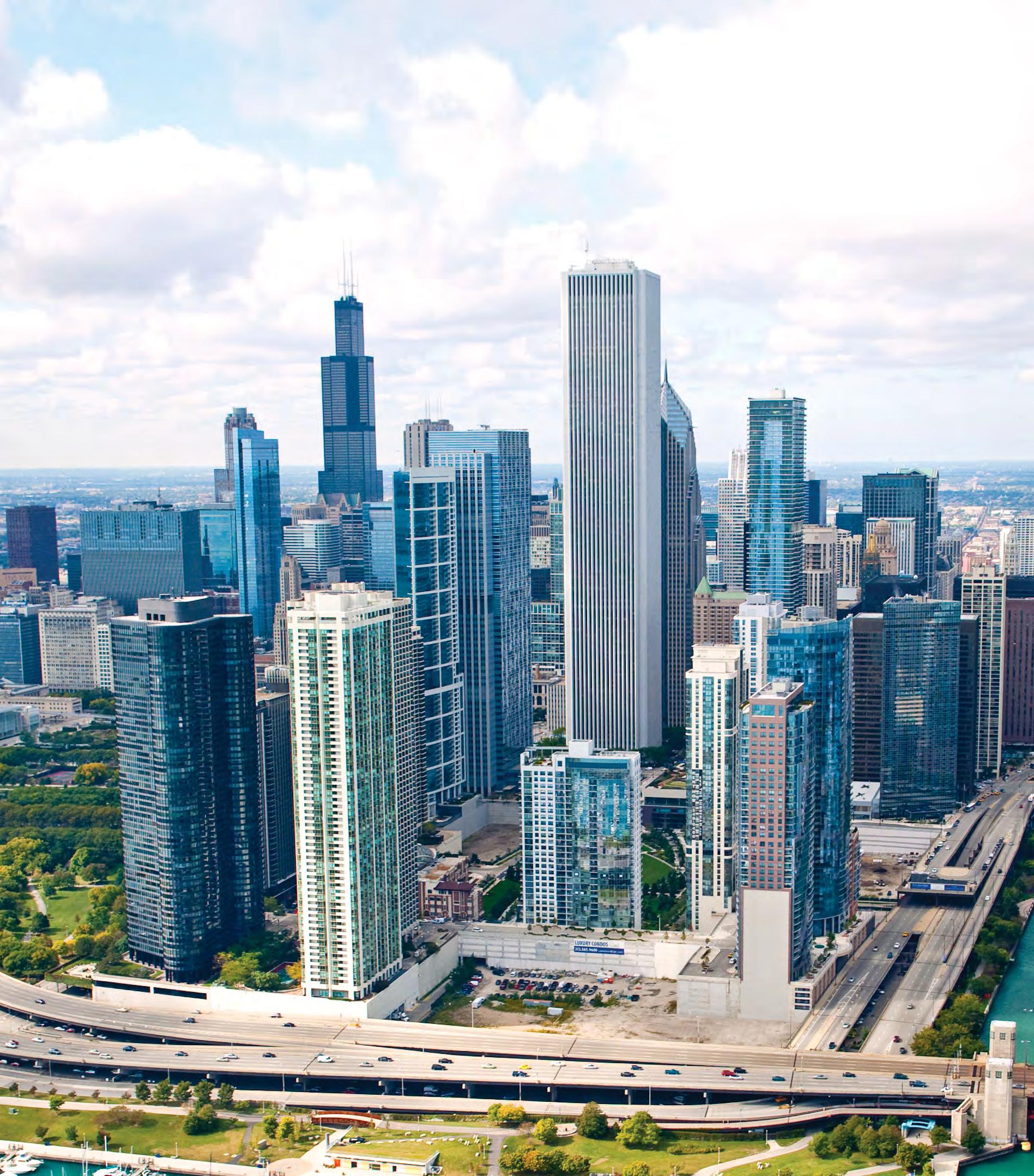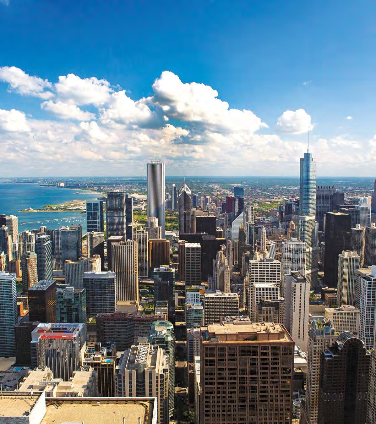 Apenas sales del Aeropuerto Internacional O’Hare en Chicago y ya te sientes como dentro de la maqueta más perfecta que hayas visto. Edificios de distintos tamaños y formas resguardan la “ciudad ventosa” que descansa a orillas del Río Chicago.