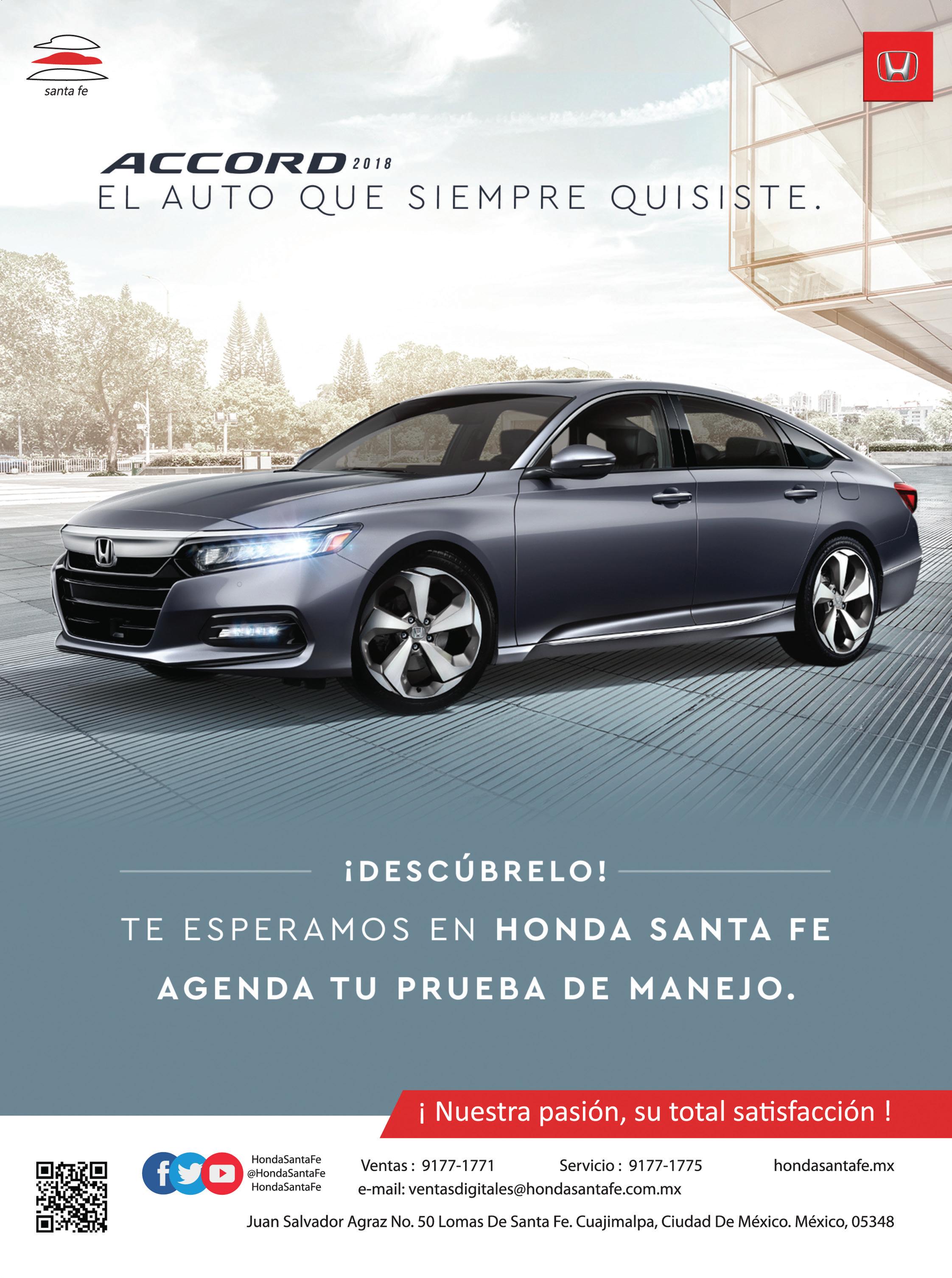 COLONOS SANTA FE Año 8 • Número 86 • Marzo de 2018. Es una publicación mensual de Grupo Mundo Ejecutivo®; Editada y publicada por: Comercializadora Mundo Rewards S.A. de C.V., Oficinas Generales: Río Nazas No. 34 Planta Baja, Col. Cuauhtémoc, C.P. 06500, Delegación Cuauhtémoc. México, CDMX. Teléfono: 5002-9500. www.mundoejecutivo.com.mx Editor Responsable: Rosa Arlenne Muñoz Vilchis. Certificado de Reserva de Derechos al Uso Exclusivo número 04-2010-041612575700101. Certificado de Licitud de Título y Contenido 14925. Se imprime en los talleres de CICSA, con dirección en Avenida México Coyoacán núm 40, Col. Santa Cruz Atoyac, Delegación Benito Juárez, C.P. 03310 CDMX, 56287878 ext. 1741. Los artículos firmados son responsabilidad de sus autores y no reflejan necesariamente el punto de vista del Editor de la publicación o de Grupo Mundo Ejecutivo®.Queda estrictamente prohibida la reproducción total o parcial de los contenidos e imágenes de la publicación sin previa autorización de Comercializadora Mundo Rewards S.A. de C.V. ©.Comercializadora Mundo Rewards S.A. de C.V. investiga sobre la seriedad de sus anunciantes, pero no se responsabiliza con las ofertas relacionadas por los mismos.