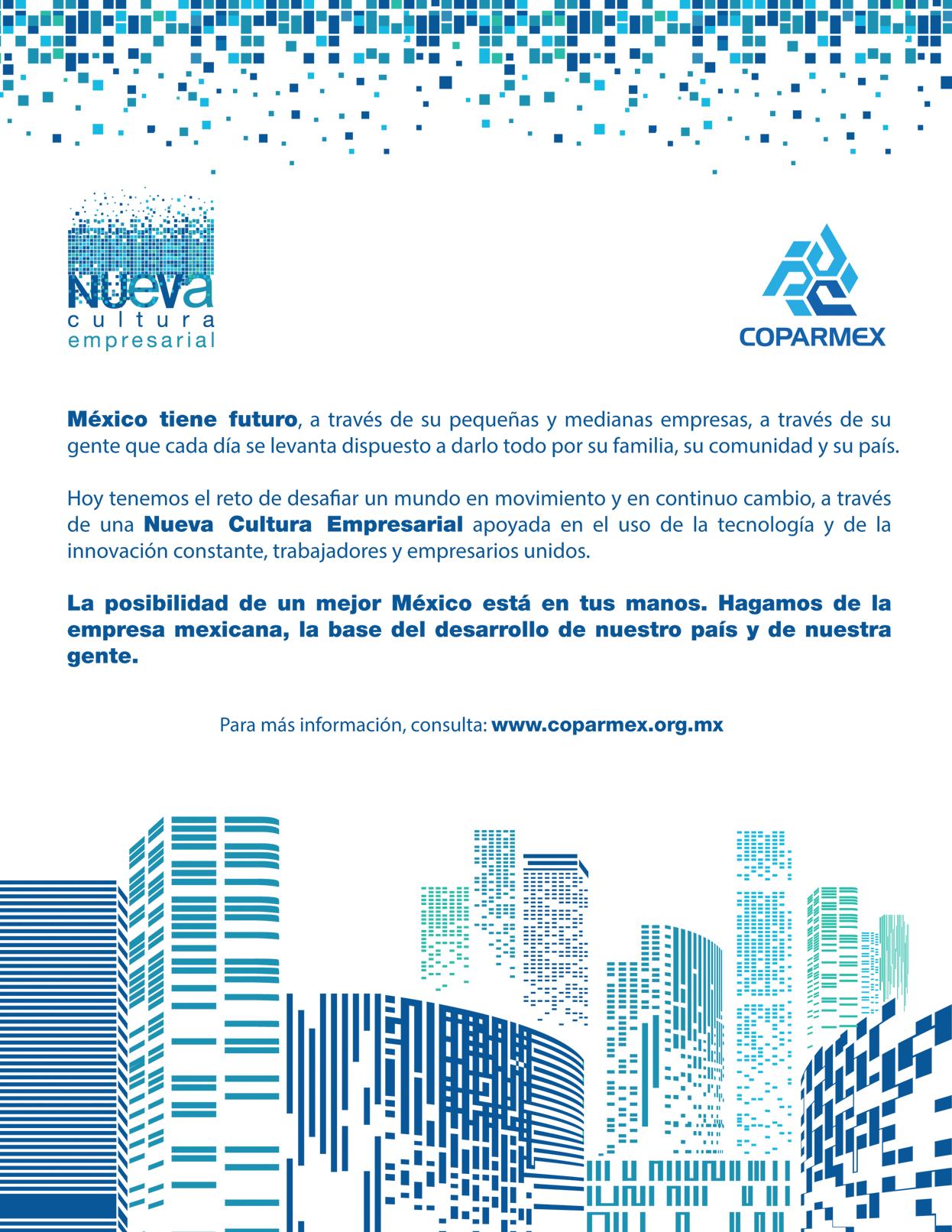 Hay sin embargo iniciativa, expectativa, programas para el emprendimiento, de RSE y muchos otros ejecutados por las empresas mexicanas y las extranjeras que participan de nuestro PIB y con eso por principio, el país puede enfrentar los retos que los vientos de hoy ya le plantean, por ejemplo el cambio climático y la RSE.