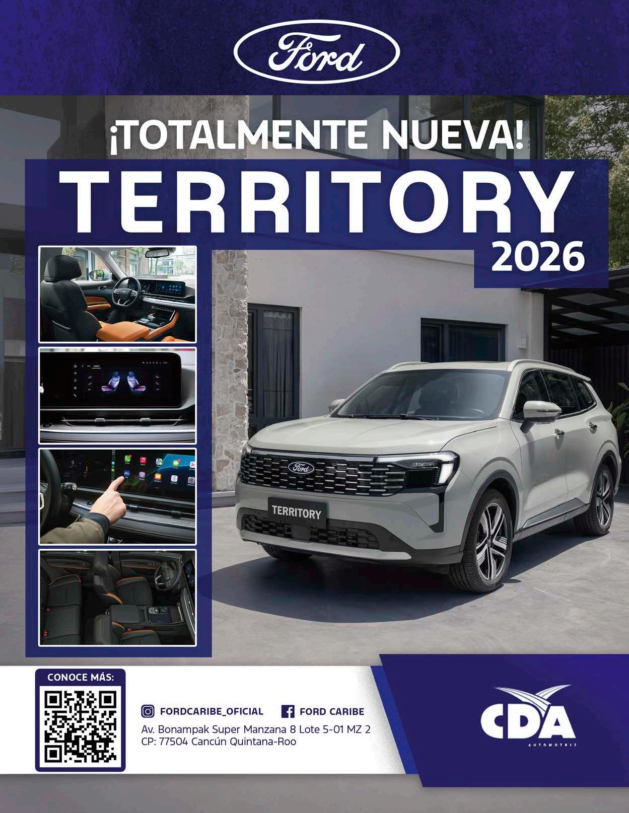 Así, durante una noche llena de estilo, innovación y ambiente festivo Ford Caribe presentó en Cancún la nueva Ford Territory 2026, una SUV pensada para las familias modernas que buscan espacio, confort y tecnología en cada trayecto.