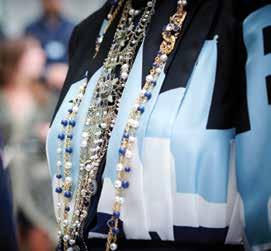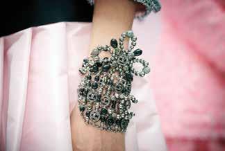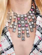 • Broches de perlas y collares en cristal de colores aderezan los looks.