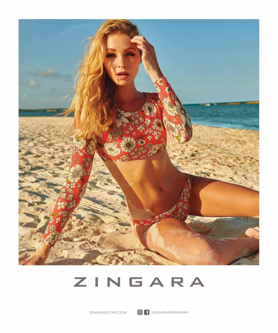 • Tops de nylon se combina con faldas transparentes con aplicaciones florales.