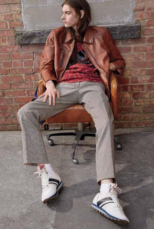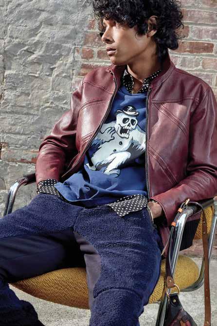 • Chaquetas de cuero envuelven conjuntos de dos piezas de punto.