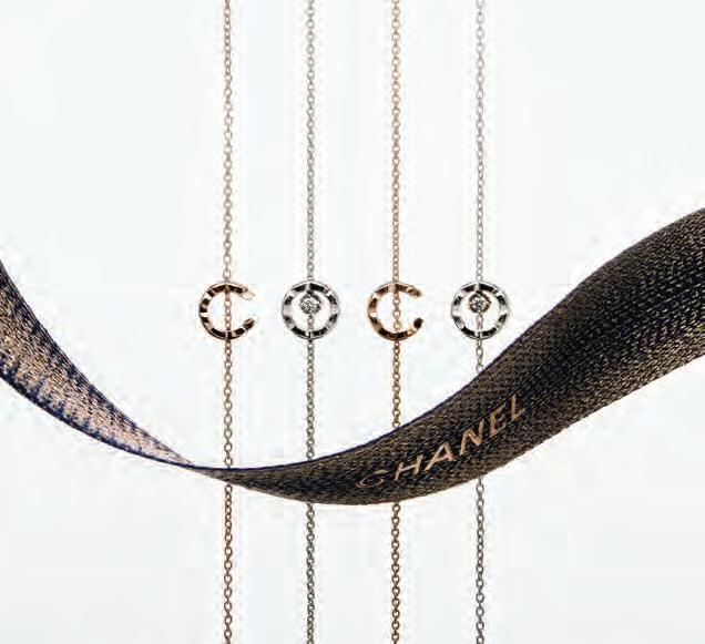 Para esta temporada de fiestas, Chanel presenta en su campaña una selección de piezas de joyería fina de las colecciones Coco Crush, Camélia y N°5, así como relojes J12 y Première. Donde el oro beige o amarillo, oro rosa u oro blanco se presentan en piezas con cerámica fina y diamantes.
