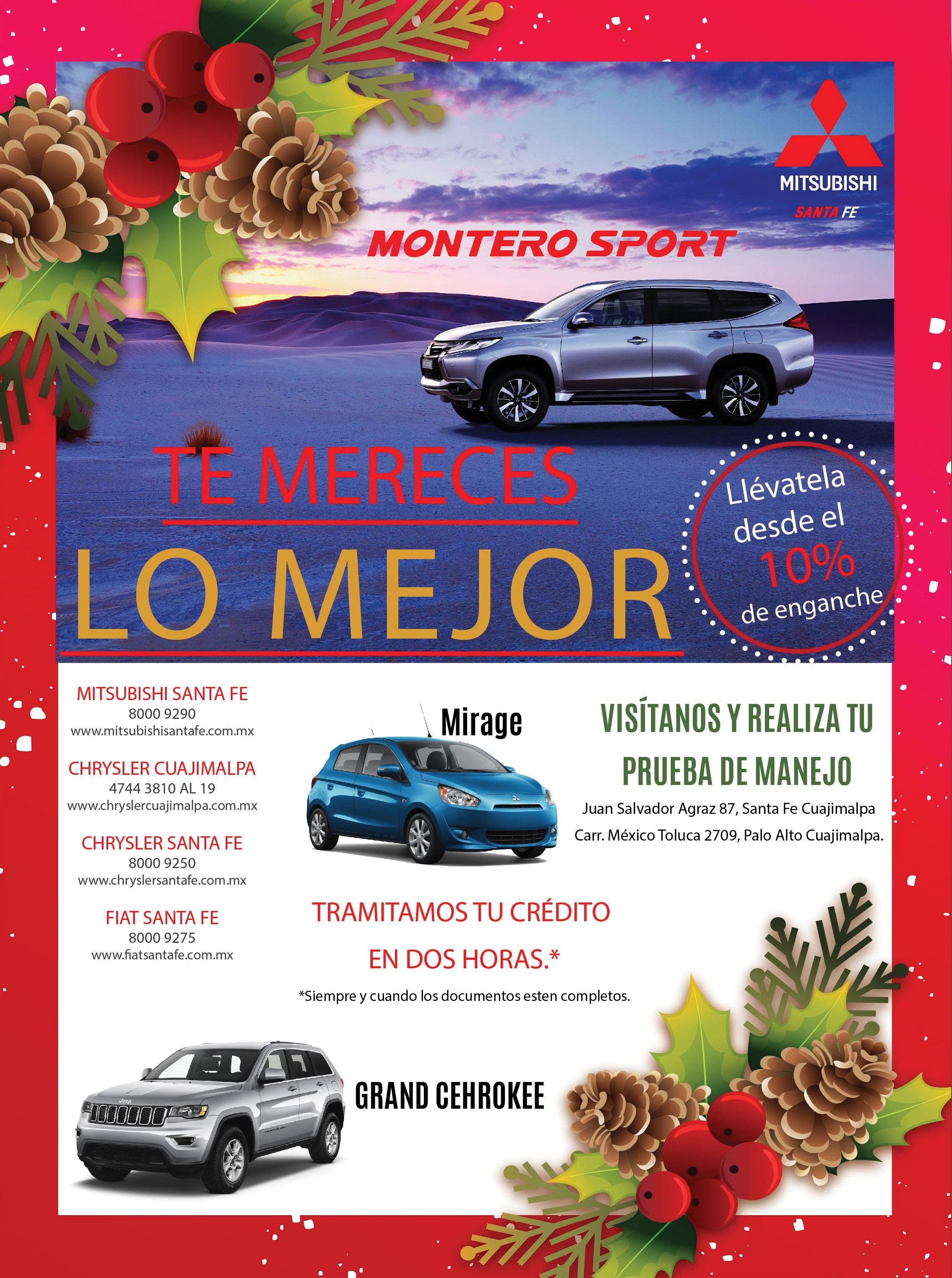 COLONOS SANTA FE Año 8 • Número 84 • Diciembre de 2017. Es una publicación mensual de Grupo Mundo Ejecutivo®; Editada y publicada por: Comercializadora Mundo Rewards S.A. de C.V., Oficinas Generales: Río Nazas No. 34 Planta Baja, Col. Cuauhtémoc, C.P. 06500, Delegación Cuauhtémoc. México, CDMX. Teléfono: 5002-9500. www.mundoejecutivo.com.mx Editor Responsable: Rosa Arlenne Muñoz Vilchis. Certificado de Reserva de Derechos al Uso Exclusivo número 04-2010-041612575700101. Certificado de Licitud de Título y Contenido 14925. Se imprime en los talleres de CICSA, con dirección en Avenida México Coyoacán núm 40, Col. Santa Cruz Atoyac, Delegación Benito Juárez, C.P. 03310 CDMX, 56287878 ext. 1741. Los artículos firmados son responsabilidad de sus autores y no reflejan necesariamente el punto de vista del Editor de la publicación o de Grupo Mundo Ejecutivo®.Queda estrictamente prohibida la reproducción total o parcial de los contenidos e imágenes de la publicación sin previa autorización de Comercializadora Mundo Rewards S.A. de C.V. ©.Comercializadora Mundo Rewards S.A. de C.V. investiga sobre la seriedad de sus anunciantes, pero no se responsabiliza con las ofertas relacionadas por los mismos.