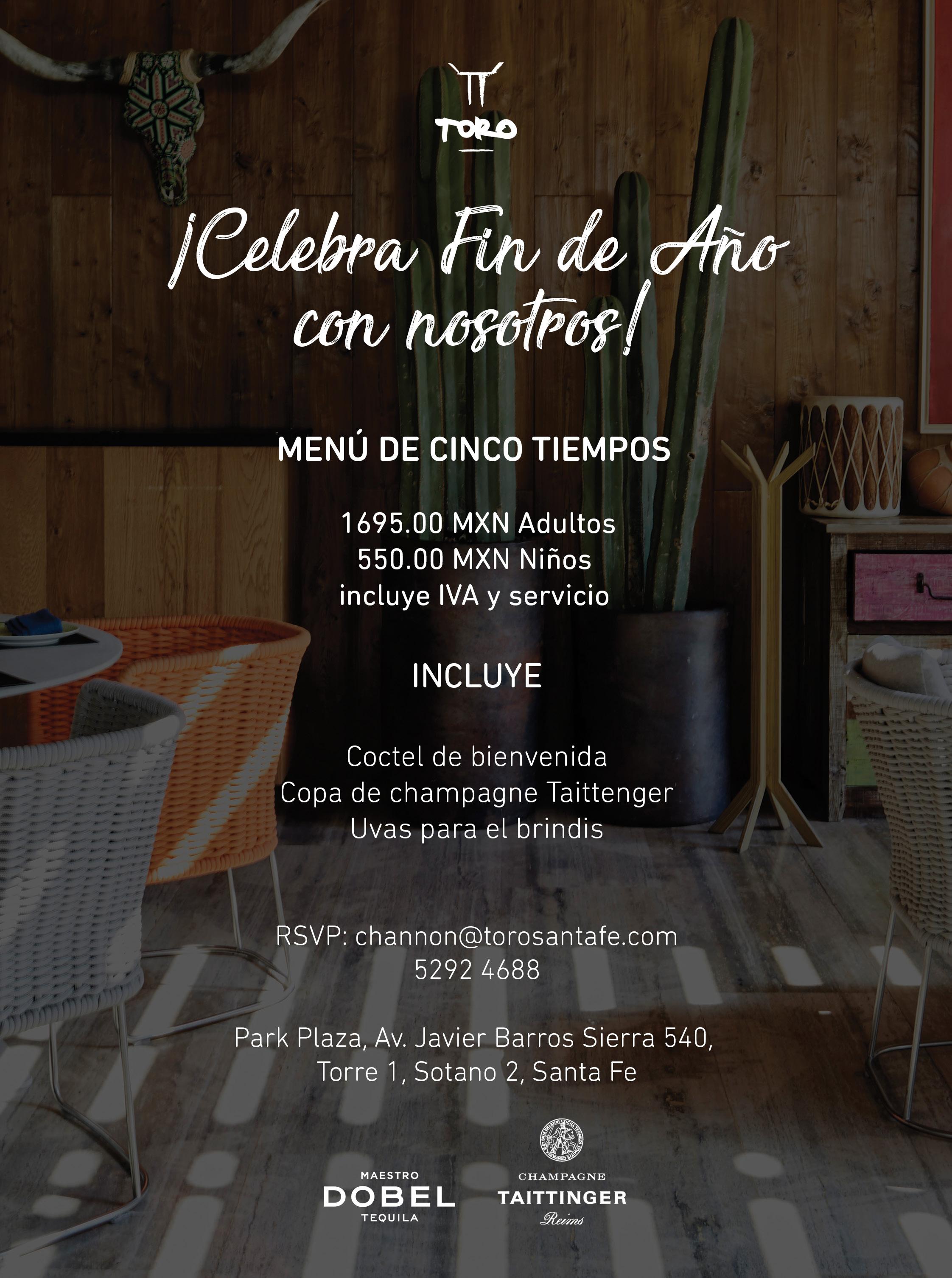 Menú a elegir tres tiempos, champaña Moët & Chandon Néctar, uvas y un kit de año nuevo, es lo que ofrece el más reciente establecimiento de la zona que celebra el sazón nacional.