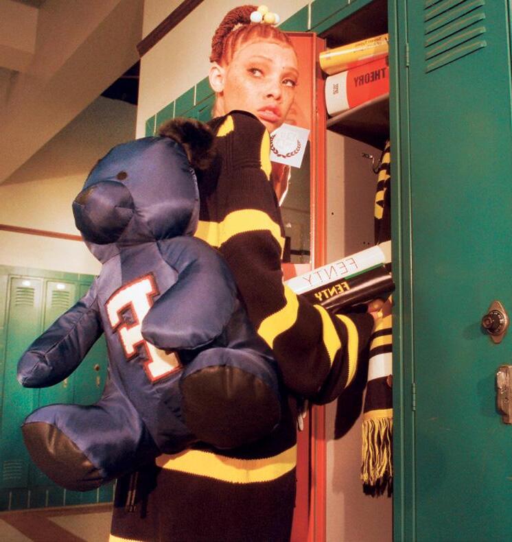 La cantante barbadense diseñó Fenty con el fin de representar los diferentes círculos culturales de los jóvenes y esos estilos tan particulares que los distinguen en los pasillos de la escuela. Prendas holgadas con textura de piel o felpa y tejidos a mano, conforman la colección que tiene como insignia la F y el 13, número de la suerte para Rihanna.