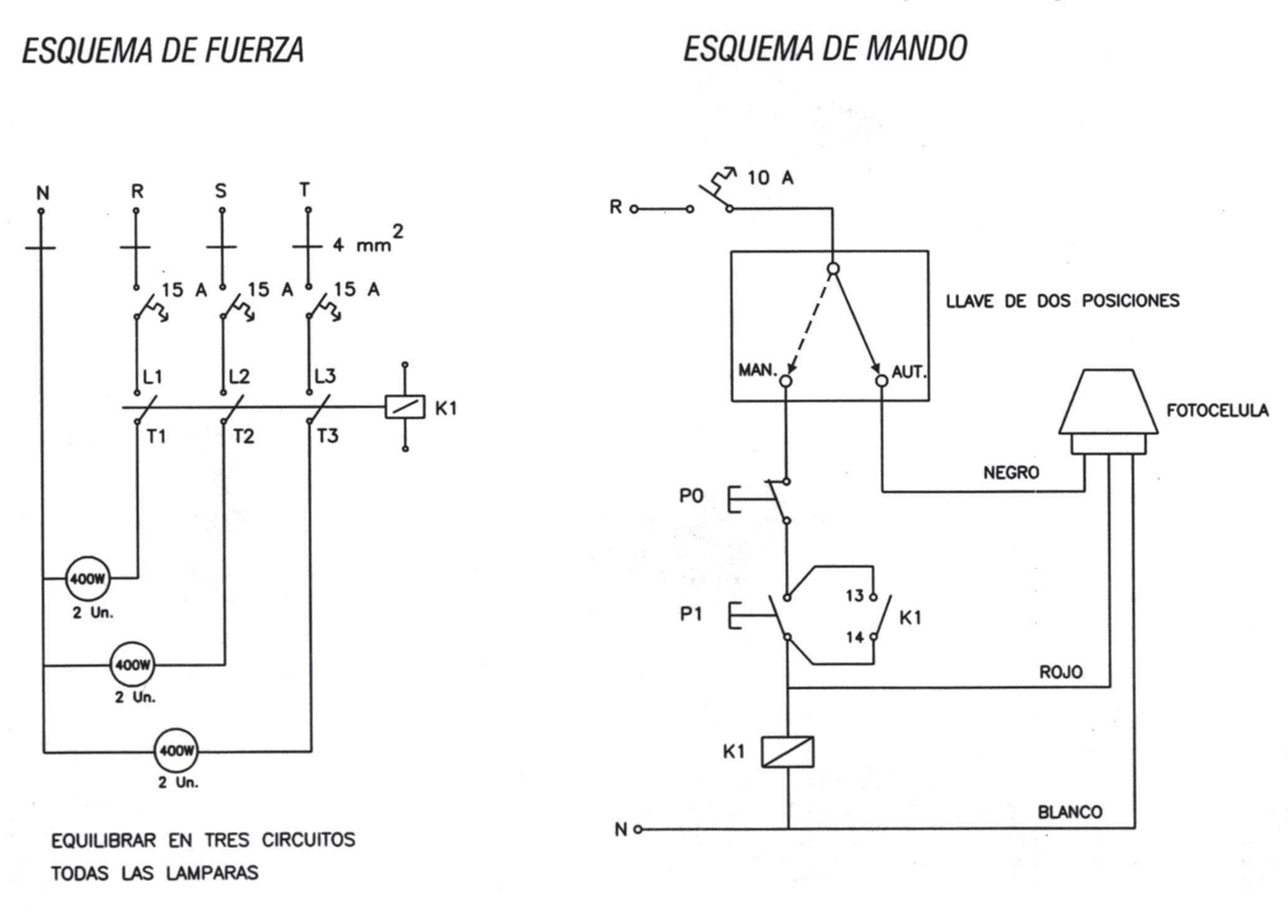 Desarrollar los circuitos de fuerza y mando para encender 6 lámparas de vapor de sodio de 400