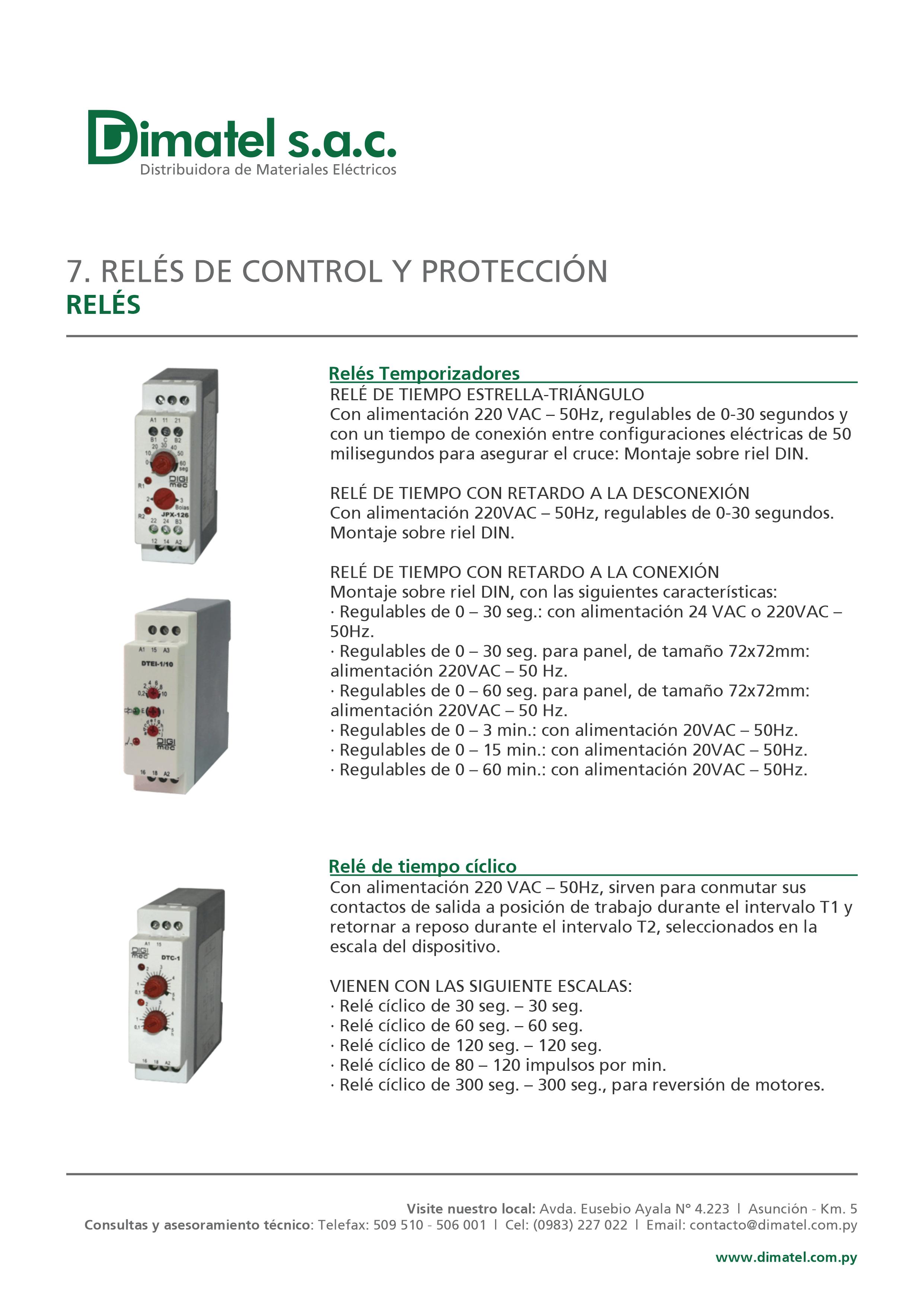 xiliares Normal Cerrado (11-12) se abre y el Normal Abierto (11-14) se cierra instantáneamente, quedando en esa condición hasta que falte una de las fases o el neutro, en ese instante vuelven a cambiar de posición. El contacto 11-14 se conecta siempre en serie con el fusible del circuito de mando, de manera a cortar la corriente de dicho circuito al cortarse una de las fases o el neutro. El conexionado del relé se hizo para un arranque directo, pero el concepto es el mismo para cualquier tipo de arranque. Generalmente se usa para proteger motores de gran potencia. Antes de conectar el relé falta de fase siempre se debe leer detenidamente su ficha técnica.