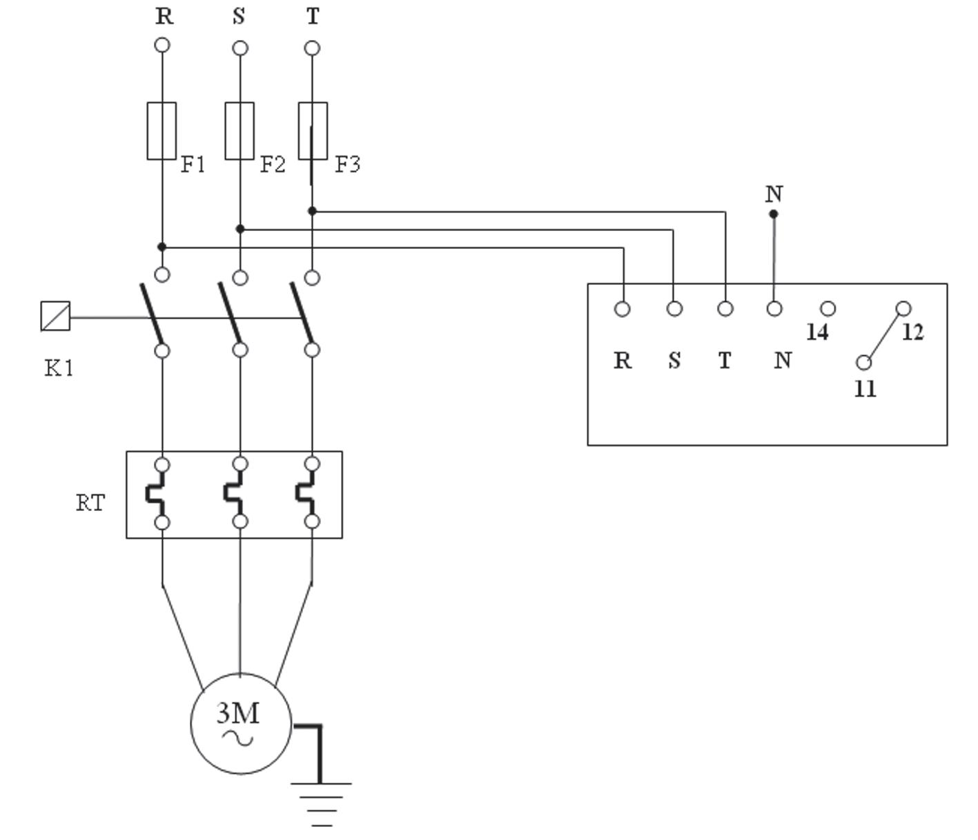 Circuito de fuerza F1 F2 F3 R S T N N 14 12 11 Relé falta de