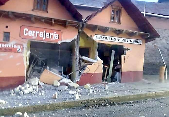 de color rojo, cargado de piedra, se desplazaba por dicha avenida, cuando se quedó sin frenos y se fue de lleno contra un local de cerrajería y venta de materiales para artistas y diseñadores. Tras este incidente, la pesada unidad volcó sobre su costado derecho,