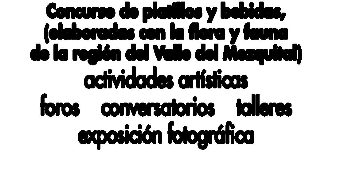 Concurso de platillos y bebidas, (elaboradas con la flora y fauna de la región del Valle del Mezquital) actividades artísticas foros conversatorios talleres exposición fotográfica