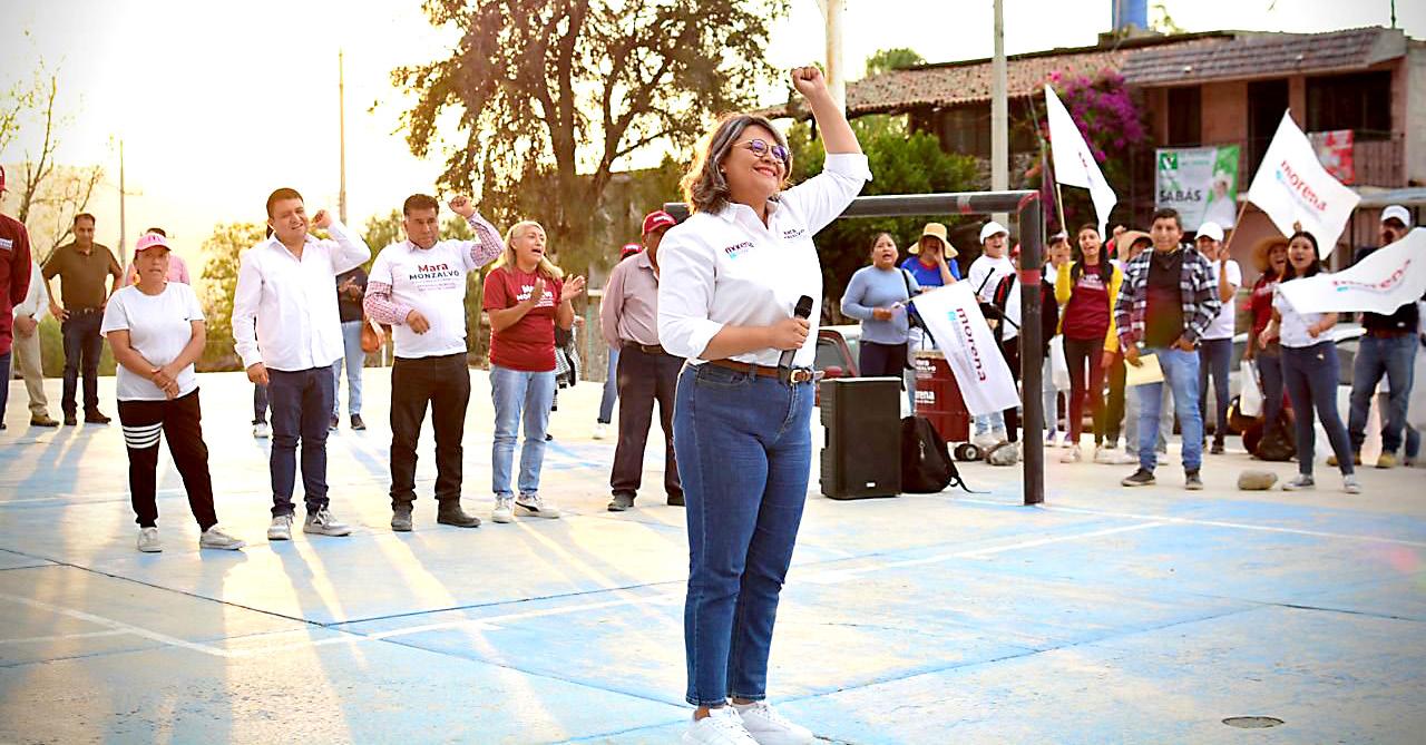 La candidata común de Nueva Alianza Hidalgo y Morena, Mara Monzalvo Godínez, aseveró que se regresarán los servicios que por derecho constitucional merecen los tlaxaquenses. Dijo que votar por morena hoy, es votar por la transformación de la vida de las familias del municipio, e hizo un llamado a defender el voto de morena 5 de 5 el próximo 2 de junio.