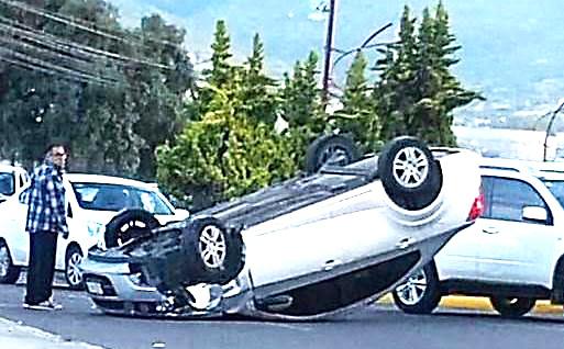 an Agustín Tlaxiaca.- El exceso de velocidad y la imprudencia al manejar, ocasionaron la volcadura de un automóvil particular en la carretera PachucaActopan, justamente a la altura del Instituto de Ciencias de la Salud (ICSA).