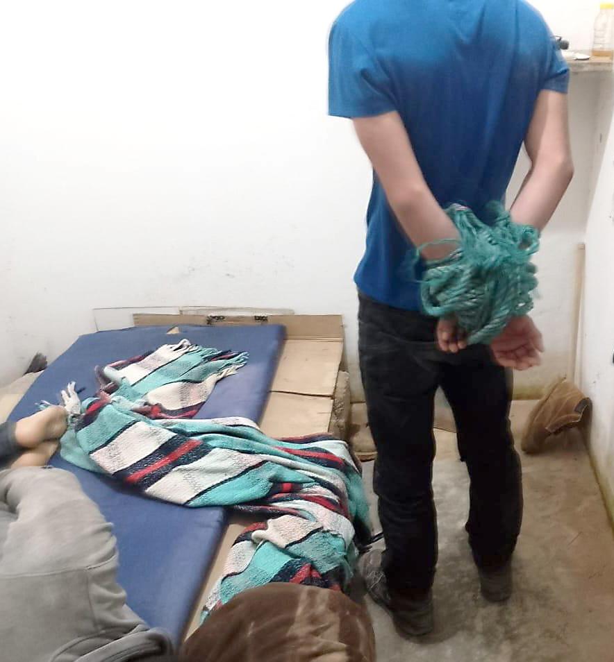 hombres armados y encapuchados habían ingresado al invernadero. Ante la situación, los propietarios decidieron esconderse entre los matorrales, mientras esperaban la llegada de las unidades de Seguridad Pública Municipal. Acto seguido los agentes policiacos realizaron una inspección minuciosa de las instalaciones, y en una de las naves encontraron a dos hombres atados de pies y manos con una cuerda color azul y agujetas.