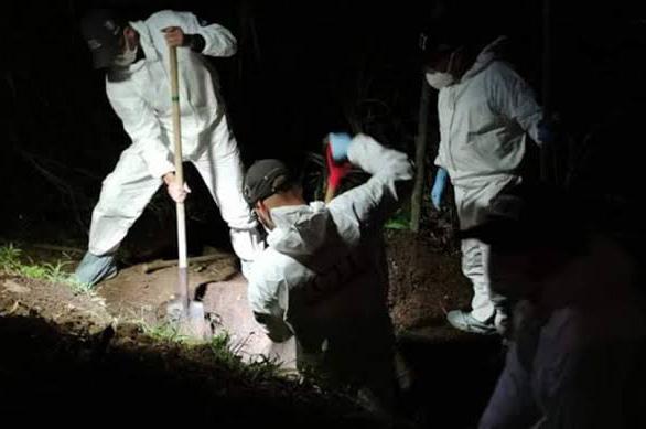 Elementos policiacos acudieron al lugar, donde tras realizar recorridos peinando la zona, localizaron un cráneo humano y varios cuerpos parcialmente enterrados, los cuales mostraban signos de haber sido devorados por la fauna local.