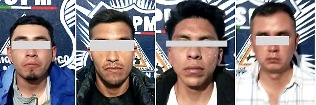 Los uniformados municipales encontraron en flagrancia a un grupo de sujetos, que fueron capturados: cuatro hombres y dos mujeres, identificados como A. R. P. H., de 24 años; J. C. M., de 32; S. A. M., de 29; X. Q. P., de 26; A. O. G., de 26, y K. S. S., de 21 años, todos residentes de Cuautitlán Izcalli, en el Estado de México.