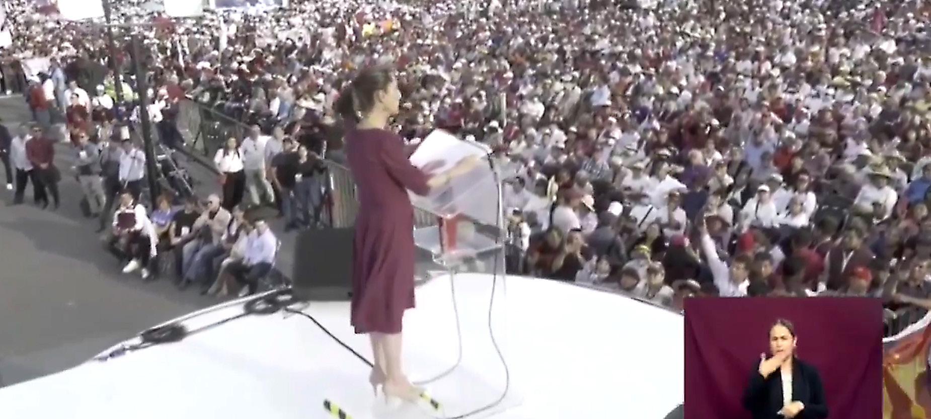Así concluyó la candidata a Presidente de la República por Movimiento de Regeneración Nacional (Morena), Claudia Sheinbaum Pardo, el masivo evento en que le planteó al pueblo de México su oferta político-electoral, en el inicio de su campaña proselitista.