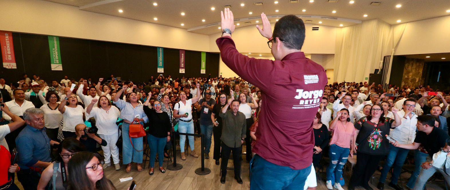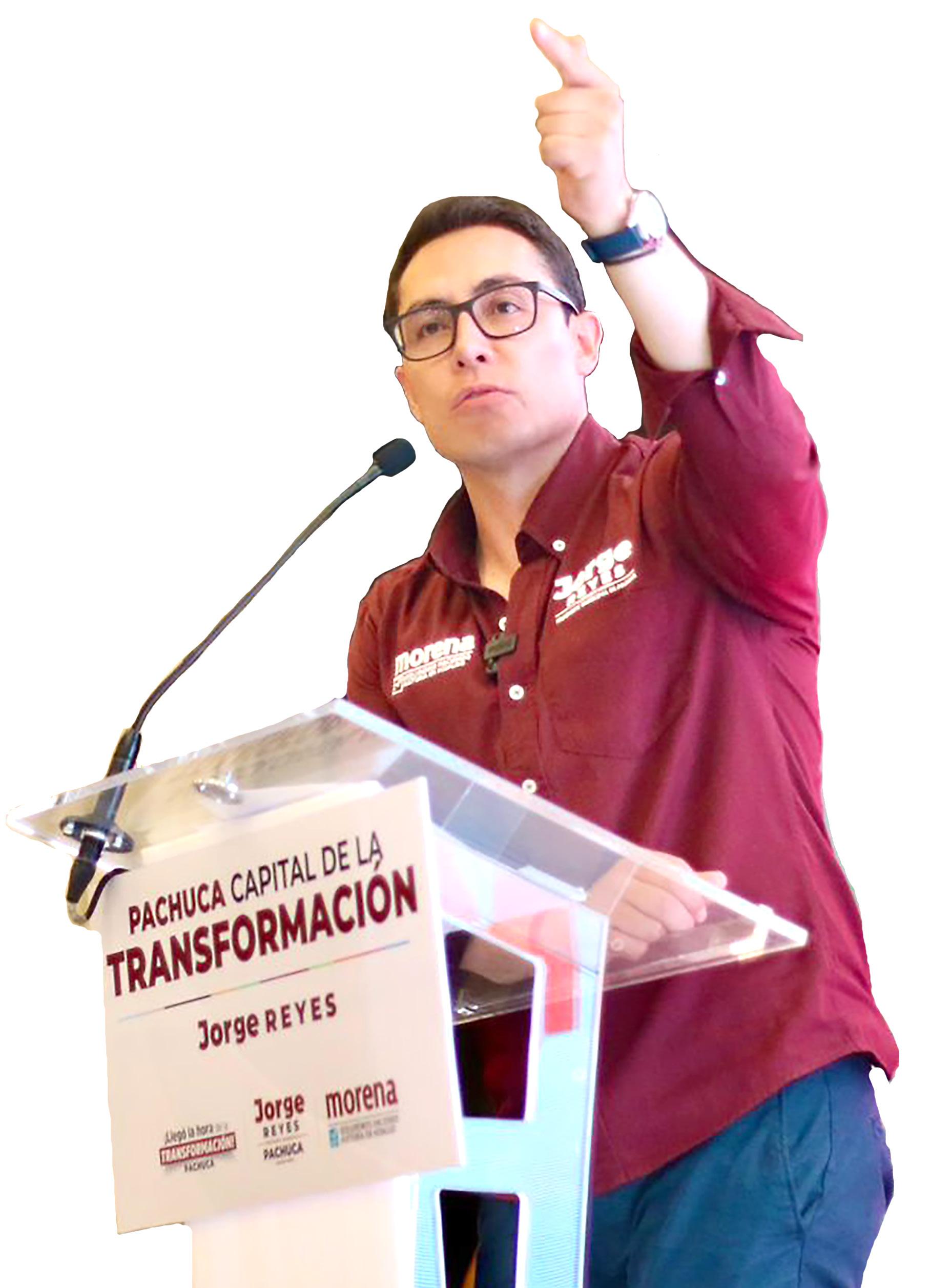 Jorge Reyes, candidato común de Morena y Nueva Alianza Hidalgo a la presidencia municipal de Pachuca, presentó ante una multitud el plan “Pachuca, Capital de la Transformación”, el cual busca sacar del bache en el que está la Bella Airosa.