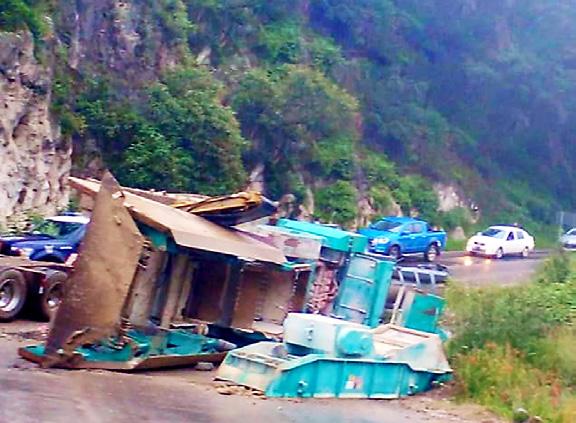 prolongada curva el chofer perdiera el control y volcara sobre su lado derecho, bloqueando parcialmente el paso vehicular.
