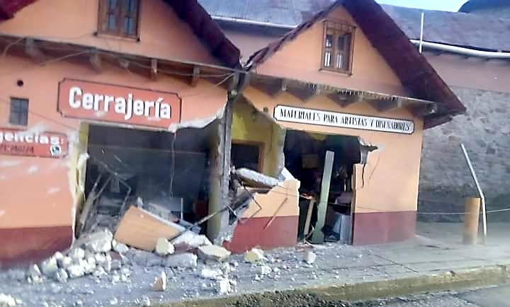 de color rojo, cargado de piedra, se desplazaba por dicha avenida, cuando se quedó sin frenos y se fue de lleno contra un local de cerrajería y venta de materiales para artistas y diseñadores. Tras este incidente, la pesada unidad volcó sobre su costado derecho,