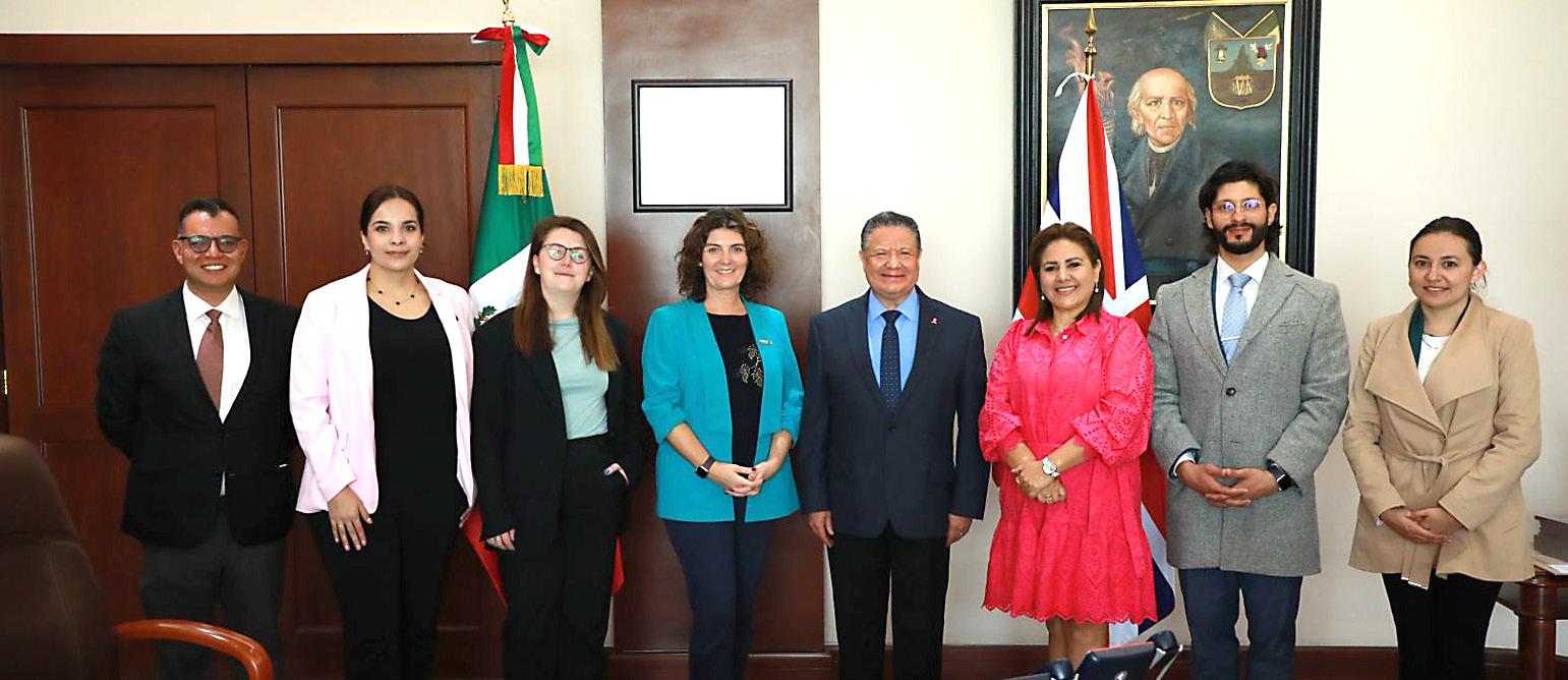 El secretario de Educación Pública, Natividad Castrejón Valdez, recibió a personal de la embajada británica, a efecto de dar seguimiento al Convenio Marco con el British Council, abordando temas clave como el intercambio académico, la certificación del idioma inglés, y la investigación y transferencia tecnológica.