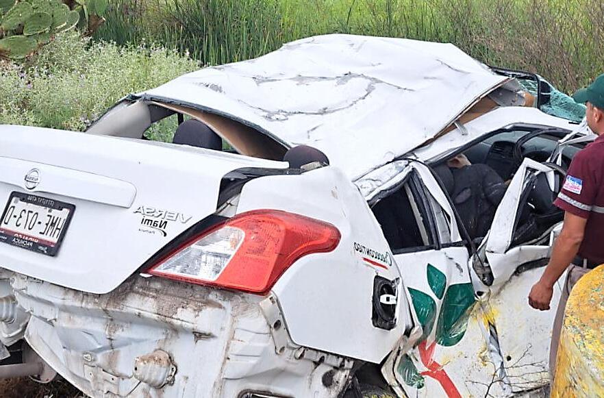 Emilio Martín García, de 28 años, aparentemente circulaba a exceso de velocidad a bordo de un Nissan Versa, blanco, placas HME073D, con rótulos oficiales del gobierno municipal de Tasquillo, y tras perder el control