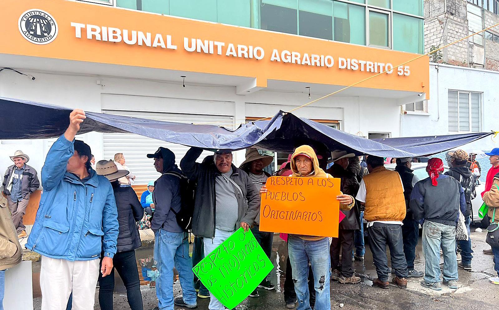Mientras los pobladores estaban afuera con pancartas, un grupo de delegados se reunió con magistrados del Tribunal Unitario Agrario (TUA).